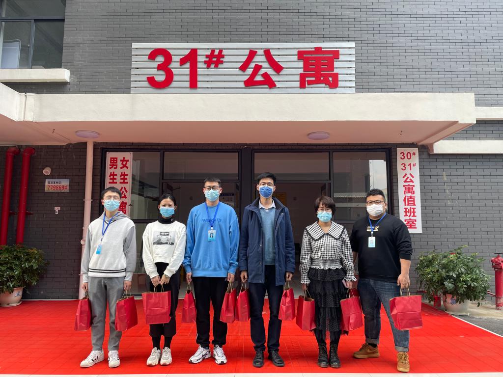 导航痕迹 当前位置: 首页 >> 学生工作 >> 正文 化生学院辅导员看望入住健康观察点学生 作者:李学来 发布日期:2022-03-07 浏览次数: 2022年3月4日下午,化学与生物工程学院辅导员一同看望慰问了返校后入住学校健康观察点的学生。 在看望过程中,各年级辅导员和同学们进行了亲切交谈,仔细询问了他们近期的生活身体状况,叮嘱这些同学要保持良好的心态;坚持锻炼身体,按时作息,确保睡眠充足;保持环境卫生和寝室良好通风状态;每天进行早、中、晚三次体温检测;保证饮食营养,增强防疫抗病意识和能力。并希望大家遵守有关管理规定,好好休息的同时,不要放松学习。 目前,beats365(中国区)-唯一官方网站共有12名学生入住学校集中健康观察点,学生健康观察期间,beats365(中国区)-唯一官方网站领导和老师主动做好学生的思想教育工作和慰问服务工作:坚持走访宿舍了解学生思想动态;密切关注同学们的身心健康;认真倾听学生的生活需求,全面做好后勤保障服务工作。 化生学院辅导员看望入住健康观察点学生 2018级辅导员张伟颀与学生合影 上一条:beats365(中国区)-唯一官方网站暑期三下乡实践基地落地灌阳县顺溪村 下一条:学院召开2022年春季学期学生工作部署会