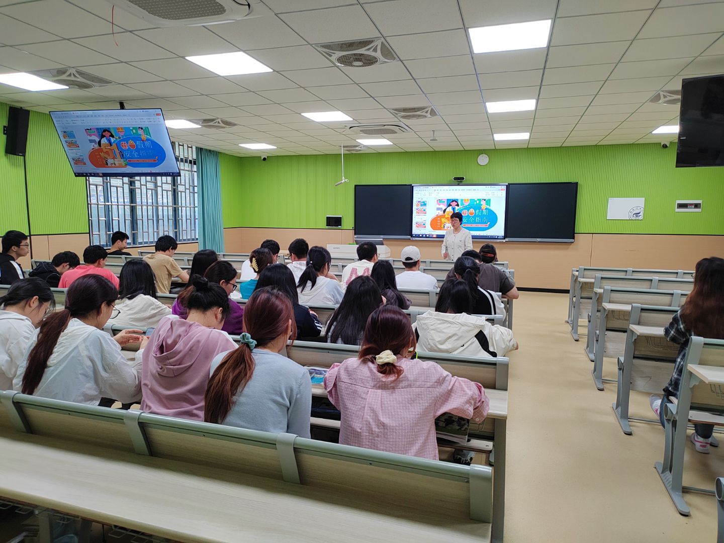 导航痕迹 当前位置: 首页 >> 学生工作 >> 正文 学院开展2025年“五一”假期安全专题教育 作者:陈穆怡 发布日期:2025-04-29 浏览次数: 为扎实做好假期安全教育工作,增强学生安全防范意识。4月26日,学院各年级辅导员利用大学生成长成才课面向全体学生组织召开2025年“五一”假期安全专题教育大会。 会上,各年级辅导员向同学们详细讲解了学校《关于2025年劳动节放假的通知》安排与要求。聚焦安全重点工作,辅导员们结合大量详实生动的案例,分别从交通安全、消防安全、网络安全、人身财产安全、防电信诈骗、防溺水、心理健康等方面加强了教育与提醒。也希望同学们做好三项工作,一是严格遵守校纪校规,认真履行请销假制度,养成良好行为习惯;二是做好朋辈互帮互助,如遇突发情况及时反馈,提高处理问题的能力;三是强化安全防范意识,开展安全隐患自查,对安全问题防范以未然。 据悉,学院近期也组织了全体专兼职辅导员深入学生宿舍进行安全隐患排查,重点检查宿舍用电安全和卫生状况,提醒学生增强自身的安全警觉意识,合理安排好假期的学习和生活。 大会现场 辅导员走访学生宿舍 (一审:陈穆怡 二审:黄道坤 三审:李少华) 上一条:学院开展2025年端午假前宿舍安全隐患排查 下一条:学院举办中国国际大学生创新大赛(2025)院内选拔赛