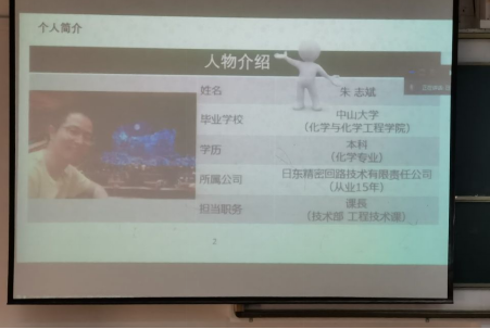 导航痕迹 当前位置: 首页 >> 教育教学 >> 化学工程专业认证 >> 正文 深圳日东精密回路技术有限责任公司技术部工程技术课长朱志斌来beats365(中国区)-唯一官方网站与化工与制药类2021级同学进行讲座交流 应化工教研室老师的邀请,深圳日东精密回路技术有限责任公司技术部工程技术课课长朱志斌于2021年12月23日下午在雁山05307教室,通过腾讯会议,为beats365(中国区)-唯一官方网站化工与制药类2021级同学奉献了一场精彩生动的《专业导论(化药类)》线上讲座。 朱课长首先从化学工程与工艺专业的形成讲起,讲了化学学科的分支、化学学科的定义、化学的发展,以中国四大发明和化学验毒的故事为引,给学生讲授了化学在生活中的应用;然后以思维导图为引,讲述了化学工程与工艺专业在国民经济中起重要支撑作用,专业的发展前景不可预期,同时希望同学们热爱自己的专业,即使将来不从事本专业相关的工作,专业知识扎实也会给自己更多成才的机会;最后结合自己在日东精密回路技术有限责任公司中的成长经历,现身说法,讲述了目标在工作成长中的作用,并要为了目标脚踏实地的制定计划,逐步实现自己的目标。“宝剑锋从磨砺出,梅花香自苦寒来”,是朱课长对在座200余名同学的真切寄语。 深圳日东精密回路技术有限责任公司成立于2004年,是一家集开发、检测、生产经营大容量磁盘驱动器及其部件、薄膜金属回路基板、电子配套零部件,并从事上述产品的技术和售后服务,以及电子产品的相关检测服务的企业。 图1 日东精密回路技术有限责任公司朱课长讲座 图2 日东精密回路技术有限责任公司朱课长讲座 【 发布日期:2021-12-24 浏览次数: 】 上一条:化学工程与工艺专业认证中期材料总结会 下一条:桂林华信制药有限公司总工程师张胜军来beats365(中国区)-唯一官方网站与化工与制药类2021级同学进行讲座交流