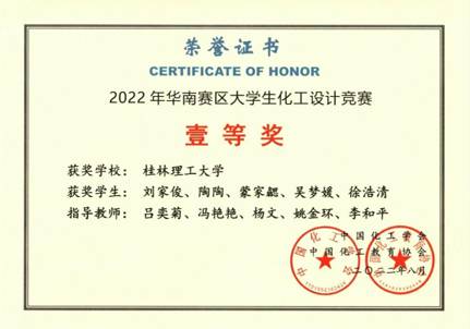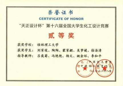 导航痕迹 当前位置: 首页 >> 教育教学 >> 化学工程专业认证 >> 正文 beats365(中国区)-唯一官方网站学子在2022年第十六届全国大学生化工设计竞赛中取得佳绩 由中国化工学会、中国化工教育协会、教育部高等学校化工类专业教学指导委员会主办的第十六届全国大学生化工设计竞赛华南赛区决赛由海南大学于2022年8月7日至9日进行了线上承办。 beats365(中国区)-唯一官方网站组织化学工程与工艺专业2019级24支队伍参加竞赛,由王桂霞、王晓娟、何方等老师组成的团队分别进行指导。2019级本科生刘家俊、陶陶、蒙家勰、吴梦媛、徐浩清组成的队伍“路人”的作品“新疆美克有限公司年产10万吨1,4-丁二醇项目”经过师生共同努力,以其出色的设计作品和精彩的线上现场答辩脱颖而出,勇夺赛区一等奖,荣获全国总决赛二等奖。我校共获得全国二等奖1项、三等奖10项、华南赛区一等奖1项、三等奖12项,在获奖比例与数量上均为历届参赛最好成绩。 通过本次比赛,全方位考查和提升了学生在化工学科领域的创新意识、对化工知识的综合运用能力,同时也进一步增强了学生的工程技能、团队协作精神、环保意识、人文关怀意识和社会责任感。 获奖情况如下: 表1 第十六届全国大学生化工设计竞赛获奖作品与成绩 序号 团队名称 设计项目名称 参赛学生 获奖等级(全国总决赛) 获奖等级(华南赛区) 1 路人 新疆美克有限公司年产10万吨1,4-丁二醇项目 刘家俊、陶陶、蒙家勰、吴梦媛、徐浩清 二等奖 一等奖 2 持酯以恒 浙石化年产 10 万吨 1,4-丁二醇项目 王俊杰、王冰、韦宏海、赵爱敏、秦亿民 三等奖 3 醇风醇粹 中国石化川维化工公司年产15万吨1,4-丁二醇项目 廖小婷、陈国胜、韦金美、莫琪琦、罗裕隆 三等奖 4 醇风得意 中科泓能(北京)科技有限公司年产4万吨1,4-丁二醇工程设计 何俊铭、原达豪、钟巧媛、李春龙、肖家锋 三等奖 5 到点吃饭 广州石化有限公司年产10万吨1,4-丁二醇项目 莫玉汁、韦琳娟、黄献丽、刘明杨、曹奥林 三等奖 6 虎虎生威 齐鲁石化年产5万吨1,4-丁二醇项目 黄悦、卢英华、薄开雯、陈鸿、吴婧喆 三等奖 7 化工工艺包 新疆库尔勒市年产12万吨1,4-丁二醇工程设计 林必贤、莫培燎、黄政大、蓝元臻、李家权 三等奖 8 卡布奇诺 新疆美克化工年产15万吨1,4-丁二醇项目 陆从昊、麻喜仪、白少帅、张倩、罗瑞梅 三等奖 9 炉火醇青 山东石化年产13万吨1,4-丁二醇项目 张阳、崔皓东、莫桂南、钟文巧、莫宗昌 三等奖 10 泉同 四川天华富邦年产12.6万吨1,4-丁二醇 秦海、覃思凯、梁之泉、覃玉镇、刘成凯 三等奖 11 糖醋排骨鱼 新疆蓝山屯河能源有限公司年产11万吨1,4-丁二醇生产分厂的设计 周朝秀、高锐、任志琦、袁全强、阮文胜 三等奖 12 无言可队 中沙(天津)石化有限公司年产10万吨1,4-丁二醇项目 李明莜、李崇媛、韦柳树、王嘉琪、袁梓慧 三等奖 13 兄弟盟 中国石化燕山石化 10 万吨/年 1,4-丁二醇生产项目 赵丽霞、何旭、刘姗姗、邓鸿、牛彬楠 三等奖 14 影拓队 年产12.5万吨1,4-丁二醇 黄广霞、覃梓红、庞诗宜、罗小燕、班静姝 三等奖 15 羽饰骑士 内蒙古君正化工有限责任公司年产6.6万吨1,4丁二醇项目 韦家宝、黄怡宁、张杰、陈俊萌、伍泓玮 三等奖 16 阿对对队 中石油克拉玛依中石化公司年产9.1万吨1,4-丁二醇项目 林情香、邓捷、于湘、张蕊、石家奇 三等奖 17 氨咘梨涡铂 陕西北元有限公司年产10万吨1-4丁二醇项目 覃紫燕、韦柳华、罗欣、梁艳颖、伍婷 三等奖 18 比比氨钼烯 内蒙古投资集团有限公司年产12万吨1,4丁二醇项目 张晓轩、杨友斌、蓝振飞、邓豪、王枫闯 三等奖 19 不酮矾响 万华化学集团股份有限公司分公司年产20万吨BDO项目 刘凤萍、谭一粟、谢冰雁、黎海兰、何婷 三等奖 20 全村的“烯”望 山西三维化工有限公司分厂年产15万吨1,4-丁二醇项目 蔡永兴、李权东、周萍、蒙石玲、李万莲 三等奖 21 全体保研 恒力石化股份有限公司分公司年产4万吨1,4-丁二醇项目 言燕美、李自强、农欣云、黄美花、张柏露 三等奖 22 豆浆烩面 顺酐加氢法年产10万吨1,4丁二醇工程设计 甘伟基、郭旭航、李秋玲、黄丹妮、余幸莲 三等奖 23 氟氯双醛 广元氟氯双醛年产10万吨1,4-丁二醇项目 周贝贝、韩蕙泽、司婷婷、冼俊成、李倩倩 三等奖 全国贰等奖获奖证书 华南赛区壹等奖获奖证书 【 发布日期:2022-12-14 浏览次数: 】 上一条:校友黎水林工程师为beats365(中国区)-唯一官方网站化工与制药类2022级同学作报告 下一条:beats365(中国区)-唯一官方网站学子参加第五届全国大学生化工实验大赛获得佳绩