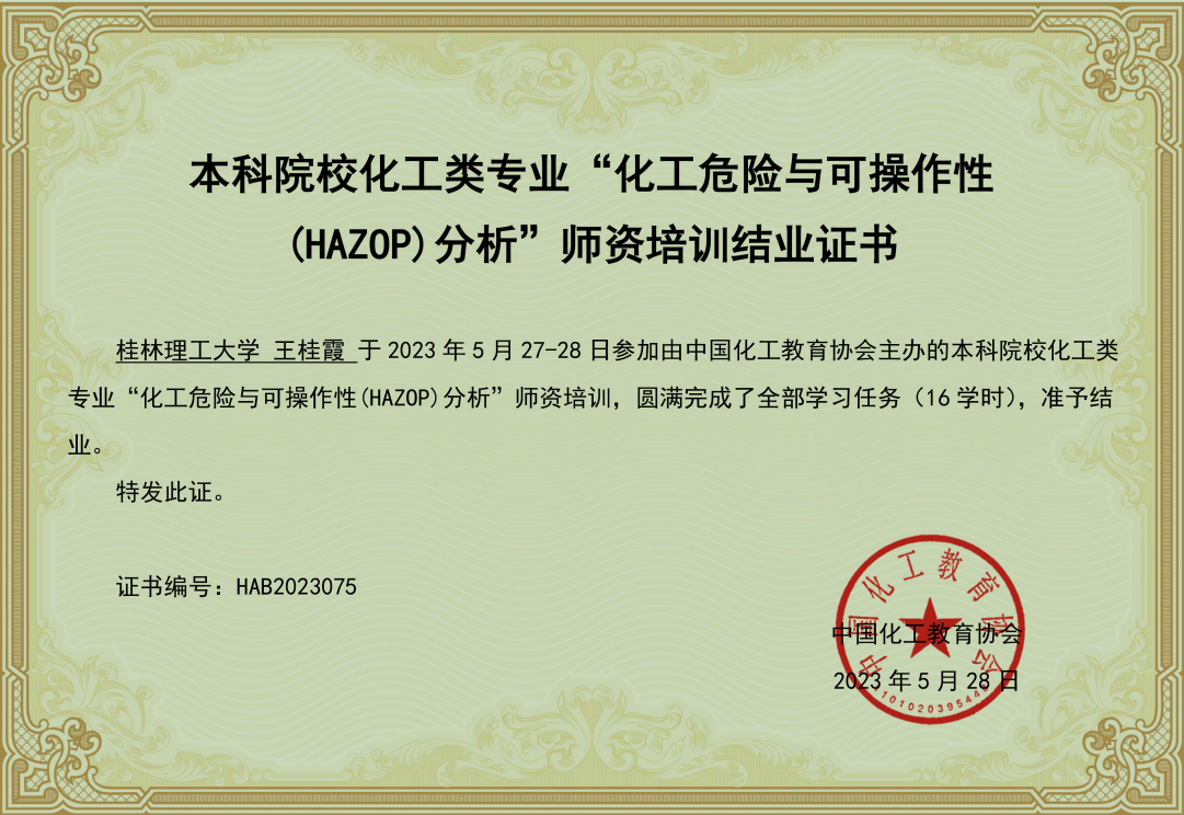 导航痕迹 当前位置: 首页 >> 教育教学 >> 化学工程专业认证 >> 正文 化学与化工教研室组织教师参加线上“2023年化工危险与可操作性(HAZOP)” 专题师资培训 为了提高beats365(中国区)-唯一官方网站教师的工程实践能力,更好地指导化工专业相关的实习实践,2023年5 月 27 日至28 日,化学与化工教研室组织教研室全体教师参加了由中国化工教育协会举办的首期全国本科院校化工类专业“化工危险与可操作性(HAZOP)”线上专题师资培训。 培训会上,具有丰富工程经验的现场安全专家马祥金高级工程师、郭坊高级工程师、针对化工过程安全之HAZOP分析前景、重难点解析,现代化工具应用、工程案例分享进行了详细的讲解和示例演示。培训过程中,主讲老师结合工程实例和教学经验作具体的阐述,并与线上老师进行互动讨论。 化工危险与可操作性(HAZOP)分析是目前被全球工业界最广泛应用的工艺危害分析方法之一,是危险化学品领域排查事故隐患、预防重大事故的重要工具和有效手段之一。教研室全体教师通过此次培训,掌握HAZOP分析方法的原理和基础知识,熟悉HAZOP分析的基本程序,理解常用概念性参数的意义。通过开展典型单元和系统的HAZOP实战演练,掌握HAZOP分析的步骤和技巧,了解间歇过程及设计阶段HAZOP分析的特点与应用。通过此次培训会,教师工程实践能力得到了提升,受益匪浅,也为本专业相关实习实践环节的质量提升提供了有效地指导。 教师培训现场照片 教师培训结业证书 【 发布日期:2023-05-29 浏览次数: 】 上一条:化学化工教研室举行2023届化学工程与工艺专业本科生毕业答辩 下一条:化学化工教研室组织教师集中学习《本科教育教学审核评估手册》