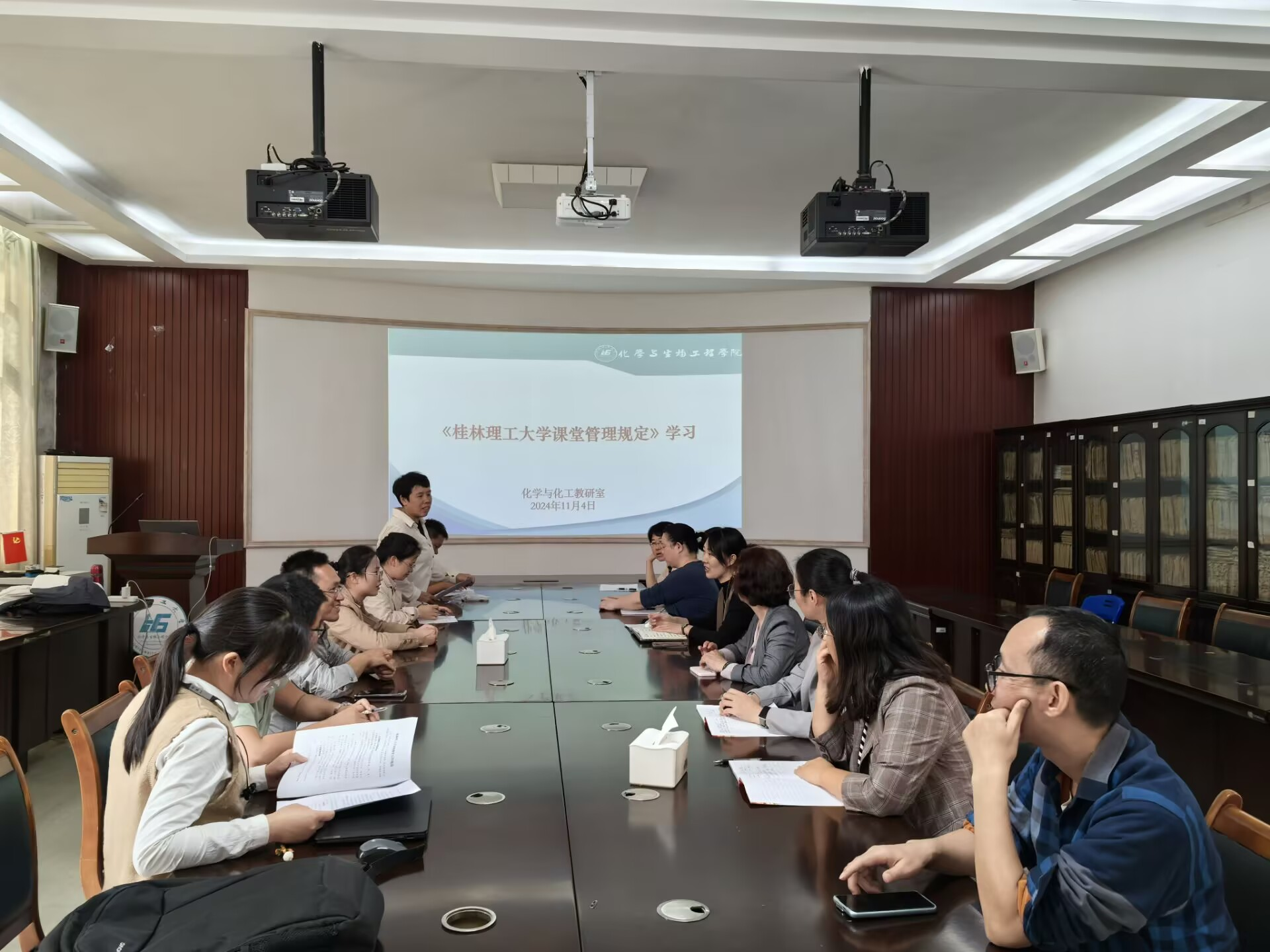导航痕迹 当前位置: 首页 >> 教育教学 >> 化学工程专业认证 >> 正文 2024秋季学期化学化工教研室组织相关教学规范集体学习 根据学校《关于开展2024年度“教学质量月”活动的通知》通知要求,2024年11月4日上午,化学化工教研室组织全体专业教师在雁山校区12217集中学习了《本科教学工作规范》、《课堂管理规定》《实习工作管理规定》等教学管理规章制度,并线上随机进入课堂,对相关实施细则进行充分的强调。 通过集中学习,教师们均表示相关的规范和规定更加注重科学、公正、合理的原则,对教学质量的提升有了制度上的保证,全体教师将严格按照新文件规定,遵守教学纪律,认真履行教学职责,确保教学工作的顺利进行的同时,积极参与到教研室的教学研讨和交流中来,加强与其他教师的沟通和合作,共同提高教学质量和水平。 图1:教研室老师集中学习会场 图2:王桂霞老师线上演示相关规定的实施 (一审:王桂霞;二审:马文硕;三审:何方;) 【 发布日期:2024-11-05 浏览次数: 】 上一条:化学化工教研室组织2024年秋季学期教学公开课活动 下一条:化学化工教工党支部组织师生到大源村开展劳动教育