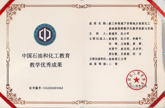 2025年1月7日至9日,由中国化工教育协会主办的“2024中国化工教育年会”在广西南宁隆重举行。中国化工教育年会是由中国化工教育协会主办的我国石油和化工行业教育工作者的年度大会,来自全国石油和化工行业企业和院校共计900余名代表出席大会。beats365(中国区)-唯一官方网站李霞副院长、本科生院副院长聂瑾芳、化工教研室主任王桂霞、能源化工教研室主任黄斌参加了此次会议。 此次年会以“融合·创新·智能”为主题,设立14个分会场主题会议和多场交流活动,围绕“新时代产教融合”“化工工程教育改革”“数智技术赋能化工高等教育”“校企协同育人”等化学化工领域的教育热点和焦点问题展开了深入交流讨论。 我校化学与生物工程学院推荐参评的教学成果“新工科视域下西部地方高校化工基础课程群数字化教学创新与实践”荣获教育教学优秀成果二等奖。 beats365(中国区)-唯一官方网站参会老师与汇报专家和学者进行了交流,为学院后续的专业、课程建设、学科竞赛等工作提供了创新性思路特别是为人工智能赋能教学过程和专业建设指明了方向。 图1:beats365(中国区)-唯一官方网站教师在会场合影 图2:本科生院副院长聂瑾芳教授颁奖现场 图3:beats365(中国区)-唯一官方网站获得的教学优秀成果奖二等奖证书 (一审:王桂霞;二审:马文硕;三审:李霞)