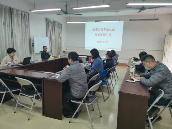 导航痕迹 当前位置: 首页 >> 教育教学 >> 生物工程专业认证 >> 正文 生物工程教研室召开生物工程专业认证推进工作汇报会议 3月23日上午,生物工程教研室在屏风11103会议室召开生物工程专业认证推进工作汇报会议,生物工程教研室、学生工作办公室、化学化工实验中心部分教师参加会议,本次会议邀请到学院党委书记梁军、教学副院长李霞、院长助理聂瑾芳参加会议并指导工作。会议由教研室副主任李静主持。 会上,教研室副主任李静汇报了生物工程专业认证的工作情况:一、根据教研室修订的2019版培养方案,已完成调整2019级、2020级的部分课程;2015级和2017级的材料补充推进中,计划四月初完成。二、实验室改造搬迁工作从寒假开始持续推进中。三、毕业设计指导能力和认证的学习方面,教研室计划请有关专家进行指导。四、自评报告撰写工作及完成时间进行详细安排,并落实到具体负责人。最后是目前教研室在认证工作推进过程中遇到的问题和困难:①教师和学生在毕业设计能力方面都需要学习提升;②2017级需要补充较多的材料,2018级课程调整较大,2017级、2018级学生配合的动员方面需要学院牵头,促进教研室、学工和学生等积极配合;③自评报告材料整理和撰写方面教师的能力需要进行学习培训;④实验室持续改造、建设经费问题,参与认证工作教师的绩效分配问题。生物工程教研室全体教师将齐心协力、认证积极的参与到专业认证工作中,希望学院领导能一如既往的给与支持、重视和指导,并帮助解决在专业认证工作推进过程中遇到的实际问题和困难。 梁军书记听完汇报后,首先要求在自评自建工作中,相关责任人对照工作时间表,按时按质按量做好自评自建相关工作;第二要求将自评自建报告的撰写时间提前,边写边学习,遇到问题再沟通、请教;最后表示学院将对生物工程专业认证推进过程中遇到的问题和困难进行积极的沟通协调和解决。 本次会议对生物工程专业认证工作进行了阶段性的总结和汇报,并对接下来的工作做出了明确的安排部署。对生物工程专业认证自评自建工作的持续推进起到积极的促进作用。 会议现场一 【 发布日期:2021-03-24 浏览次数: 】 上一条:生物工程专业认证教师培训--教师工程能力培训 下一条:生物工程教研室召开生物工程专业认证工作汇报会议