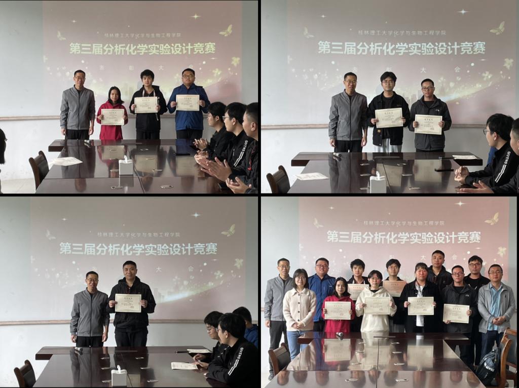 导航痕迹 当前位置: 首页 >> 教育教学 >> 应用化学专业评估 >> 正文 第三届分析化学实验设计竞赛圆满结束 为提升beats365(中国区)-唯一官方网站应用化学专业本科学生的实验设计能力和实验操作水平,同时为拓宽本科学生专业视野,增强综合素质水平,应用化学专业举办了第三届分析化学实验设计实验竞赛。竞赛内容综合了实验设计、实验操作及实验视频三个环节。经同学们自由组队,在专业教师的指导下,同学们从资料查询、方案设计、方案论证、方案实施、数据分析、撰写总结、视频制作等多方面进行了锻炼。历时一个月的修改及打磨,最终形成了10件完整的参赛作品。 学院组织专家及学生对作品进行了二轮评审。首先,邀请了应化专业19级超50名同学对作品进行大众评分,权重为30%;其次,邀请了应化专业5位专业教师对作品的专业性进行评分,权重为70%。综合评审结果如下: 序号 项目名称 得分 获奖等次 备注 1 铁矿石中总Fe₂O₃含量的测定 84.10 一等奖 第二组 2 漂白粉中有效氯含量的测定 82.48 二等奖 第六组 3 Cu-Zn混合溶液中各组分含量的测定 82.34 二等奖 第八组 4 维生素C药片中抗坏血酸含量的测定 79.21 三等奖 第十组 5 HCl-H₃BO₃混合液中各组分浓度的测定 79.14 三等奖 第一组 6 白云石中CaO和MgO含量的测定 78.99 三等奖 第四组 通过小组协作、资料查询,对实验方案进行反复讨论,最终得到指导老师的认可,进行实验操作,并进行视频制作。历时一个月的修改及打磨,最终收到了10组实验作品。 对于收到的实验视频,评分包括2个部分,一是学生自评,邀请了应用化学专业19级超过50名同学进行评分,该部分占30%。二是评委评分,邀请了应用化学教研室4名老师进行评分,该部分占70%。最终评出一等奖1名,二等奖2名,三等奖3名。 颁奖仪式于2024年4月8日雁山12217举行,孔翔飞副院长、院长助理袁亚利教授及应化教研室多位教师参与了颁奖活动。仪式最后,孔翔飞副院长对竞赛提出了期望,鼓励将竞赛办好、办大,办成应化专业的特色。 颁奖仪式现场 一审:黄艺鹏,二审:马文硕,三审:李霞 【 发布日期:2024-04-19 浏览次数: 】 上一条:应用化学教研室举行2020级本科生毕业设计(论文)开题答辩会 下一条:应用化学专业完成校级理科认证专家考察验收工作