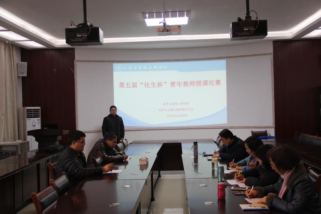 为了进一步发挥工作组织的桥梁作用,不断增强分工会组织的吸引力与凝聚力,为教职工搭建业务能力素质拓展平台,不断提升业务能力素质和水平,进一步推动beats365(中国区)-唯一官方网站课堂教学改革,加强教学实践研究,增进教师间的学习与交流,beats365(中国区)-唯一官方网站分工会于2018年12月28日积极协同学院行政主办了“第五届‘化生杯’青年教师授课比赛”活动。比赛在雁山校区12217多功能室举行。