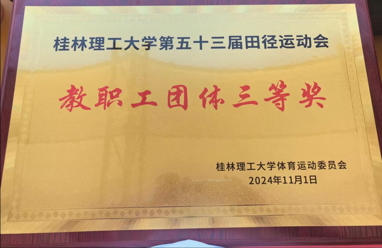 秋风送爽,阳光明媚,金桂飘香。10月31日,学校第53届田径运动会在雁山校区开幕。本着“友谊第一,比赛第二”的精神,beats365(中国区)-唯一官方网站分工会广大教职工踊跃参加各类竞技项目,运动员们热情似火,激情飞扬。 比赛现场,参赛教职工全力以赴、各显身手、团结拼搏、奋勇争先,场上欢声笑语不断,掌声喝彩声此起彼伏,整个赛场洋溢着欢乐、和谐、昂扬、奋进的氛围,最终,beats365(中国区)-唯一官方网站分工会荣获教职工团体三等奖。 三尺讲台挥洒汗水,运动赛场释放激情。此次运动会不仅是一场体育竞技,更是一次心灵的交流与碰撞,充分展现beats365(中国区)-唯一官方网站分工会积极向上、团结协作的精神面貌。大家纷纷表示,将以更加饱满的热情和昂扬的斗志投入到今后的教学科研管理服务工作中,为学院各项事业发展作出更大的贡献。 方块队合影 学院教工参加快乐运动会剪影 学院教工参加快乐运动会剪影 学院教工参加快乐运动会剪影 学院教工参加竞技比赛项目 学院教工参加接力项目 团体三等奖 (一审:马文硕 二审:李子院 三审:李少华)