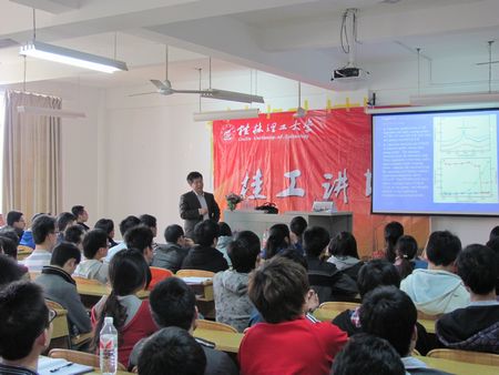 在雁山校区,于俊生教授的报告题目是《半导体纳米化学》。在报告中,于教授首先通过生动的图片、数据等把师生们带进了神奇的半导体纳米材料世界。接着,于教授给大家介绍了半导体纳米微粒的特性以及各类半导体量子点的制备、性能等内容。最后于教授介绍了半导体纳米材料的运用领域并展望了相关领域的美好前景。在报告过程中,于教授以充分的例证,渊博的知识,形象的图文资料,深入浅出讲授方式,赢得了师生们的热烈掌声。