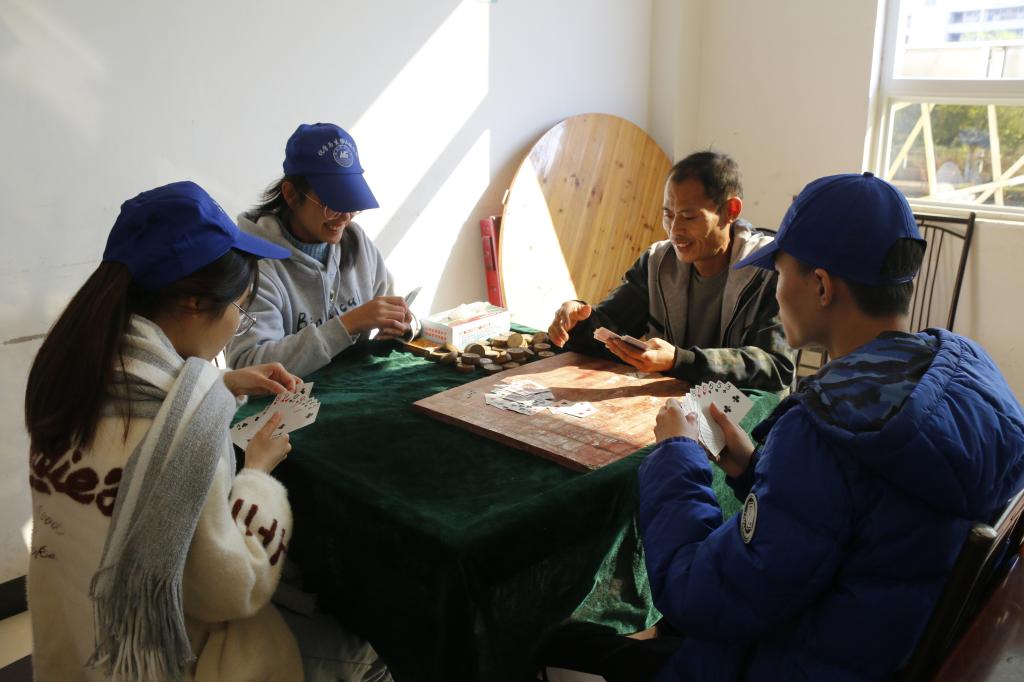 活动开始前,志愿者们从学校乘车出发来到了残疾人阳光家园基地,志愿者们首先为阳光家园的残疾人士们送上慰问品并询问管理员相关事宜。接着,在管理员的介绍下,志愿者们按照活动前的安排进行了合理的分工。一些志愿者与残疾人士聊天谈心,了解他们的生活状况和兴趣爱好,并且与残疾人士下象棋、打牌等,而另一些志愿者与残疾人士学习做手工。在活动过程中,志愿者们积极与残疾人士们进行互动,与他们交流,这不仅让残疾人士们感受到了志愿者们的热情,也让志愿者们更加深入的体会到志愿服务带来的意义。