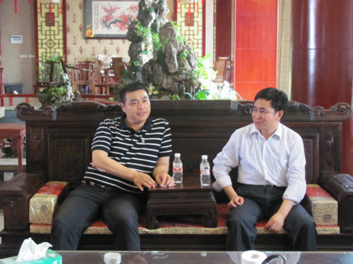 李建平院长(右)和桂林市周氏顺发食品有限公司董事长周路生(左)在洽谈合作事宜