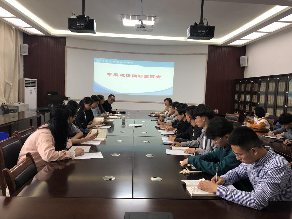 导航痕迹 当前位置: 首页 >> 学生工作 >> 学生活动 >> 正文 学院召开班级学风建设调研座谈会 作者:熊艳 发布日期:2021-10-15 浏览次数: 为进一步推动学院学风建设工作的开展,学院于10月15日在12217会议室召开学风建设调研座谈会,学院党委副书记李南、副院长李霞及全体辅导员出席本次会议,各年级学生代表参加会议。 本次调研活动既严格落实“我为群众办实事”工作部署,也起到听取同学意见,做到立行立改,切实推动学院学风建设工作的具体方案。座谈会上,同学们积极发表各自的看法和建议,有的同学表示任课老师应加强和同学的交流沟通,时常互动;有的则反映公共课上大部分同学学习不认真,出现沉迷于游戏或睡觉等情况。李霞副院长针对同学们提出的问题和建议指出学生应首先对自身学习负责,不能因为课堂乏味而拒绝听课。同样,他表示学生应该多与老师沟通交流,提出建议,双方共同改正进步,才能构建高效率课堂。 本次座谈会的召开有利于加深学校对学生学习状况的了解,促进学院学科建设和专业发展。学院将以此次座谈会为契机,将调研成果转化为解决问题的具体行动,进一步创新工作办法,争取学院的学风建设工作上一个新台阶。 会议现场 上一条:学院召开2021级安全信息员培训会 下一条:学院召开学生助学贷款诚信还款教育活动