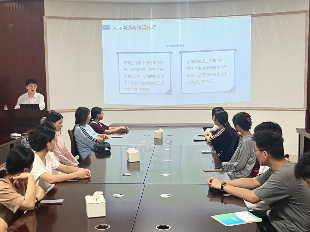 导航痕迹 当前位置: 首页 >> 学生工作 >> 学生活动 >> 正文 学院召开心理委员工作会议 作者:朱皓 发布日期:2025-05-22 浏览次数: 为扎实推进学院心理健康教育工作,强化心理委员队伍建设,5月21日,学院于雁山校区12217会议室召开心理委员工作会议。会议由辅导员朱皓主持,学院全体心理委员准时参会。 会上,朱皓对5月心理健康教育活动安排进行了细致说明。他表示,5月是“全国学生心理健康宣传教育月”,学院已举办“心灵舒压,共话成长”茶话会、电影艺术鉴赏、口红制作体验等特色活动,后续还会开展更多形式的活动,提升同学们的心理健康水平。希望所有心理委员积极宣传、广泛动员班内同学参与活动,确保活动取得良好效果。 随后,朱皓开展了朋辈帮扶能力培训。他结合具体案例,从朋辈心理辅导的技巧、倾听与沟通的方法、常见心理问题的应对策略等方面进行了深入讲解,并强调心理委员要充分发挥朋辈优势,主动关心身边同学,给予他们情感支持和实际帮助,成为同学们信赖的“知心人”。 本次心理委员工作例会的召开,不仅增强了心理委员的责任意识和使命感,也为进一步提升学院心理健康教育工作水平奠定了坚实基础。学院将继续秉持“以学生为中心”的教育理念,不断加强心理健康教育体系建设,为学生的全面发展和健康成长保驾护航。 会议现场 (一审:朱皓 二审:黄道坤 三审:李少华) 上一条:学院召开2025年春季学期楼栋管理委员会会议 下一条:【资助育人文化节】beats365(中国区)-唯一官方网站组织受助学生开展“化学魔法秀”主题志愿活动