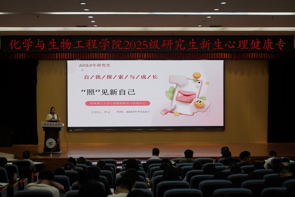 导航痕迹 当前位置: 首页 >> 学生工作 >> 学生活动 >> 正文 化学与生物工程学院举办2025级研究生新生心理健康专题讲座 作者:朱皓 发布日期:2025-09-22 浏览次数: 9月16日下午,化学与生物工程学院2025级研究生新生心理健康专题讲座在学校图书馆报告厅顺利举行。学校心理健康教育中心教师李云围绕“自我探索与成长”主题开启《“照”见新自己》主题讲座,212 名研究生新生聆听讲座。 李云围绕“认识自己”这一核心议题,深入浅出地讲解了如何接纳自己、欣赏自己,并努力成为更好的自己。她指出,自我认知是心理健康的重要基石,只有真正了解和接纳自己,才能激发内在的潜能,实现个人成长与进步。李云通过生动的案例和互动环节,引导研究生新生们深入思考自己的内心世界,鼓励大家要勇于面对自己的不足,同时也要珍惜自己的独特之处,学会欣赏自己的优点和长处。通过一系列富有启发性的讲解,新生们逐渐领悟到了自我认知的重要性,并开始思考如何在日常生活中更好地实践这些理念。 本次《“照”见新自己》讲座的成功举办,不仅为化学与生物工程学院的研究生们提供了一次宝贵的学习机会,也为他们未来的成长之路指明了方向。此次讲座也为学院的心理健康教育工作注入了新的活力,为推动学生全面发展奠定了坚实基础。 讲座现场 (一审:朱皓;二审:马亚博;三审:李少华) 上一条:学院召开2025年秋季学期第一次心理委员工作会议 下一条:化学与生物工程学院2025年拟推荐到校毕业生基层就业卓越人物人选信息及事迹公示