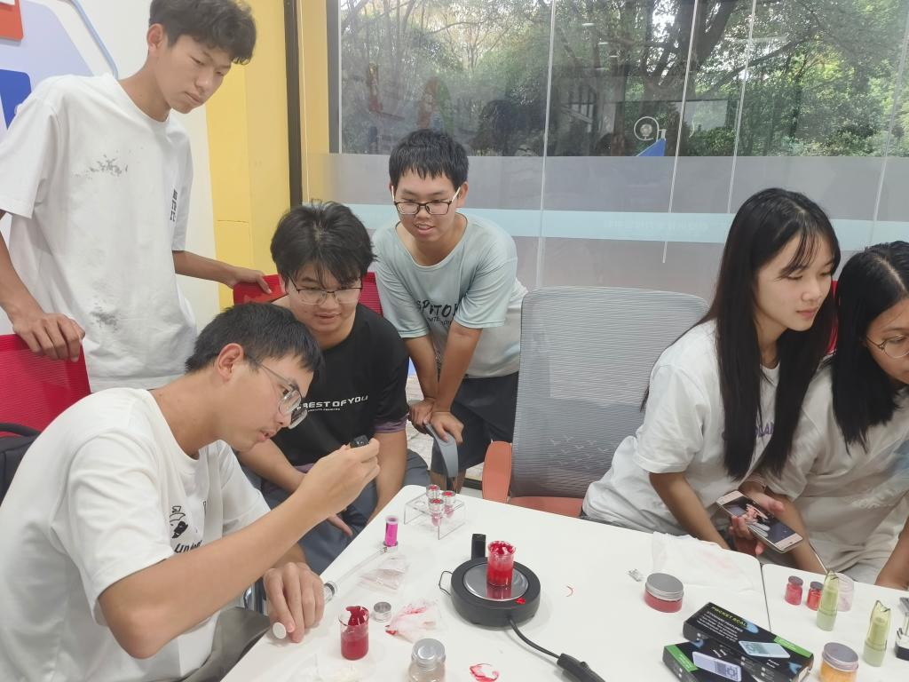 导航痕迹 当前位置: 首页 >> 学生工作 >> 学生活动 >> 正文 学院“唇揽星河,色映心梦”口红制作体验活动第三期顺利举行 作者:陈千癸 发布日期:2025-10-13 浏览次数: 为推动化学学科知识更好地融入学生日常生活,强化化学知识的实践应用与科普传播,10月9日至10日,学院化学协会、劳动教育工作室系列活动之“唇揽星河,色映心梦”口红制作体验活动第三期在明园“一站式”职业选择能力体验中心顺利开展,吸引了60余名学生参与。 活动现场,化学协会成员介绍了口红制作的步骤与注意事项,并阐释了其中蕴含的化学原理,如不同成分在加热、融合过程中的化学反应以及对口红色泽、质地的影响。为了让同学们有更直观的认识,成员还进行了现场演示,从色粉的调配、精油与蜂蜡的融合,到灌装操作的手法,每一个步骤都逐步讲解。随后,同学们纷纷动手,自行挑选色粉调配颜色,制作属于自己的冬日口红。 此次活动让同学们在趣味实践中加深了对化学知识的理解与应用,体验到手工制作的乐趣。同时,丰富了校园文化生活,促进了学科知识与生活的紧密结合,为化学知识科普提供了生动范例,有助于营造良好的学术与生活氛围。 一审:陈千癸;二审:黄道坤;三审:李少华 上一条:学院"雏鹰启航 班干领航计划"第三期聚焦学风建设 下一条:学院开展国庆、中秋假前安全隐患大排查
