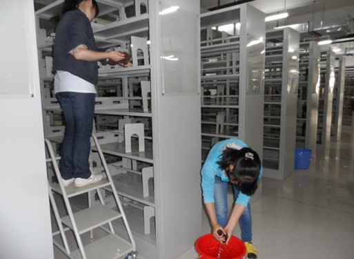 下午16点,支部副书记李其军同志带领着支部党员和预备党员进入图书馆进行清洁活动。首先帮助图书馆相关负责人清扫了书架,然后在负责人的安排下又整理了图书。大家分工合作,你来打水我来清洁,你整理地处我整理高处,在愉快的氛围中进行着本次清扫活动。在唐胜同志提醒准备收工的时候,大家也还意犹未尽。