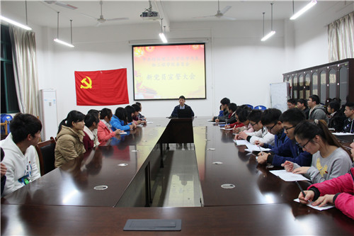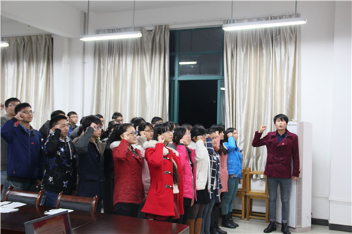 导航痕迹 当前位置: 首页 >> 学生工作 >> 共青团 >> 正文 beats365(中国区)-唯一官方网站举行2014年秋季期新入党党员宣誓大会 作者: 发布日期:2015-07-19 浏览次数: 2015年1月5日晚,化生学院学生党建办公室主任何宗辉老师在12217会议室主持召开中共beats365(中国区)-唯一官方网站化学与生物工程学院委员会新党员宣誓大会,2014年秋季期新发展的35名预备党员参加了宣誓大会。 大会伊始,何宗辉老师就本次发展新党员中出现和存在的问题进行了总结,并提出了要求,他强调入党是一件严肃的事情,必须认真对待,端正自己的入党动机。紧接着由本科生第一支部任永刚同志带领全体预备党员面向党旗进行入党宣誓,宣誓过程庄严肃穆,铮铮誓词代表了他们对党的忠诚决心。 接下来何宗辉老师对新发展的党员提出了几点期望。第一,他希望我们加强理论学习,加强党性修养,养成良好的生活习惯,不断提高自身综合素质。第二,他希望我们能正视自身不足,不断完善自我,超越自我。第三,他希望我们严格要求自己,发挥党员的先锋模范作用。最后,何宗辉老师就学院党建的基本情况作了介绍,并希望新发展的预备党员能为各支部带来新的活力,也能以党员的身份锐意进取,服务大众。 宣誓大会现场 会议现场1 会议现场2 上一条:beats365(中国区)-唯一官方网站成功召开化工设计大赛动员大会 下一条:beats365(中国区)-唯一官方网站研究生党支部成功举办趣味运动会