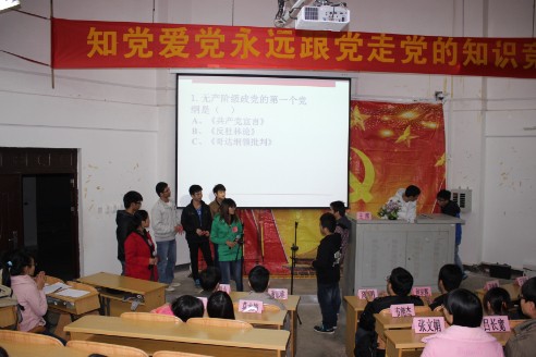 为进一步引导beats365(中国区)-唯一官方网站党员、入党积极分子深入学习党团知识,加强党员、积极分子对党章、党史的认识和理解,提高学员的思想觉悟,beats365(中国区)-唯一官方网站本科一支部于11月29日晚上7:30在05101教室隆重举行“知党、爱党、永远跟党走”为主题的党知识竞赛。学院12级辅导员何宗辉老师及各支部代表、各年级同学到场观看了比赛。