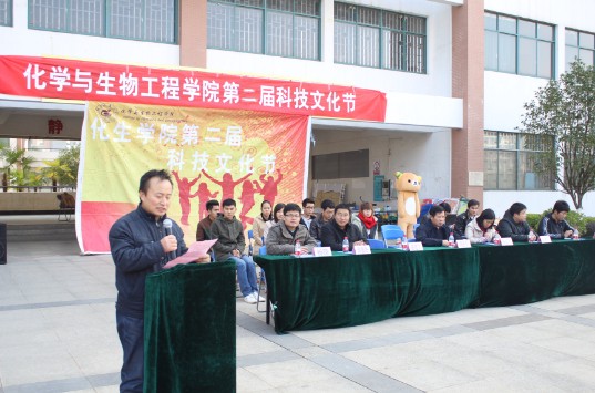 科技时代,创新化生。12月19日下午,化生学院第二届科技文化节开幕式暨“蛋蛋的忧伤”广场活动在雁山校区三栋广场隆重举行。学院党委书记胡祖生、党委副书记陶剑飞、副院长杨建文、各级辅导员及各兄弟学院团委学生会主席作为嘉宾参加了开幕式。