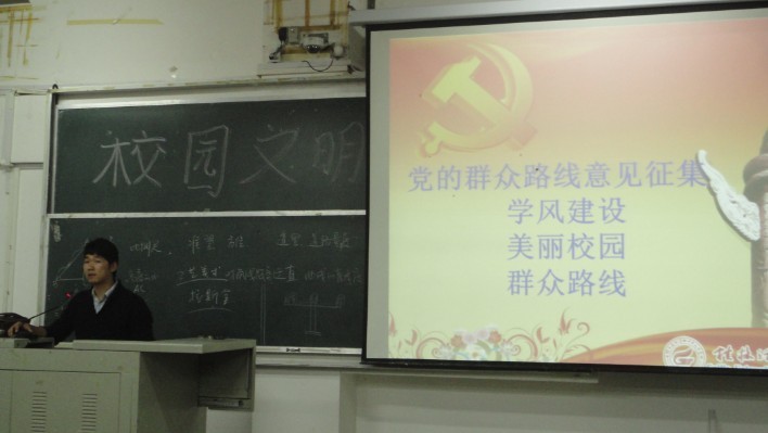 会上,何宗辉老师首先与大家共同学习了关于群众路线、学风建设、美丽校园这三个方面的文件精神,深入浅出地解读了学校、学院就上述三个方面制定的一系列文件以及工作机制。同时,何老师鼓励大家在日常生活的点滴中,就群众路线、学风、美丽校园等与同学们息息相关的事情进行集思广益,面向全院学生广泛征求群众的意见和建议,将意见或建议以书信、电子邮件的形式,发送到学院党建办公室专门设立的意见箱和电子邮箱当中,以实现密切联系同学,服务同学,使同学得到更多实惠这一目的。