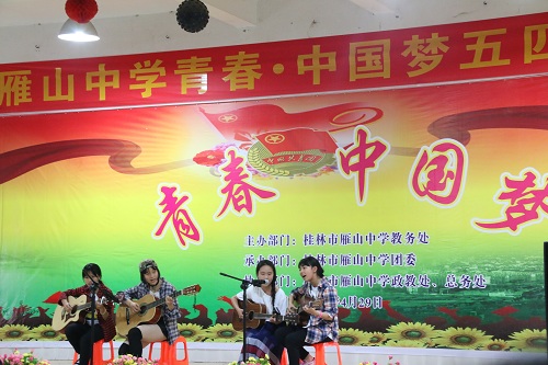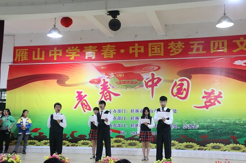 奉献是青春的精神,担当是青春的使命。为纪念“五四运动”97周年,继承和发扬“五四运动”的光荣传统,激励青年团员积极向上,乐观进取的精神,凝聚青年团员的智慧和力量,5月4日,beats365(中国区)-唯一官方网站团委学生会组织志愿者与桂林市雁山中学一同举办“雁山中学青春·中国梦五四文艺汇演”活动。