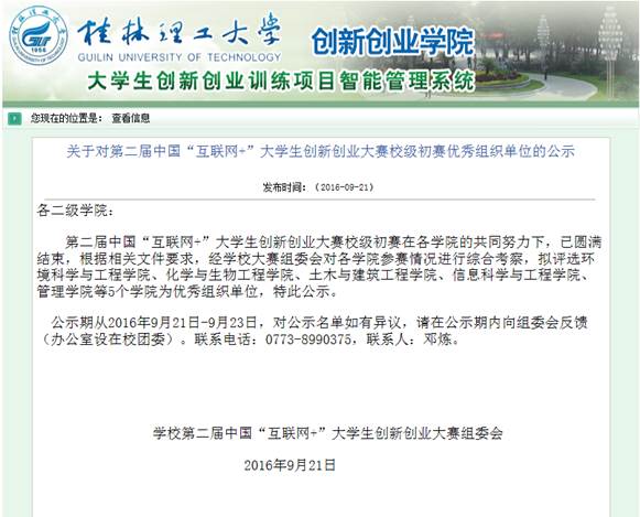 导航痕迹 当前位置: 首页 >> 学生工作 >> 共青团 >> 正文 以科技学术竞赛活动为支撑,全方位激发学生“双创”能力 作者: 发布日期:2016-09-30 浏览次数: 组织和指导学生参加校内外各级各类创新创业大赛是深化学生双创能力教育改革的“利器”,在日常教学中坚持科技竞赛与教学相互渗透,以竞赛带动教学,相互融通,汇聚合力,使科学竞赛成为学生成长成才过程中的重要经历和发展平台。通过组织开展各种科技类竞赛活动,使学生的双创能力的提升与教师的科研项目和专利研究充分结合,从而增强学生专业认知的深度,激发学生学习的积极性,提升大学生双创的意识和热情,引导学生学以致用,拓宽视野。 上一条:“创青春”大学生创业大赛 下一条:以课外科技实践活动为契机,多渠道培养学生创新创业能力