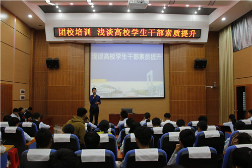 为提高beats365(中国区)-唯一官方网站学生组织成员的思想理论水平和政治素养,夯实学生干部的业务能力,2017年11月6号晚,beats365(中国区)-唯一官方网站于萃华楼学术报告厅举办了本学期团校培训的第一讲——浅谈高校学生干部素质提升,本次培训会由学院何宗辉老师主讲,beats365(中国区)-唯一官方网站团委学生会及楼栋管理委员会全体成员参加了此次培训。
