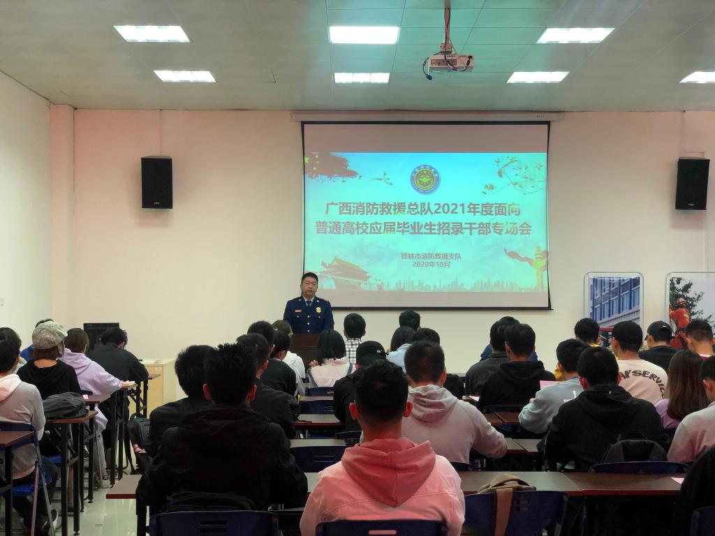 导航痕迹 当前位置: 首页 >> 招生就业 >> 就业 >> 正文 beats365(中国区)-唯一官方网站组织毕业生参加广西消防救援总队2021年高校应届毕业生招录干部专场会 作者:梁精华 发布日期:2020-10-23 浏览次数: 2020年10月23日,beats365(中国区)-唯一官方网站组织学生参加了由广西消防救援总队宣教中心组织的专场招聘宣讲会。化学与生物工程学院辅导员梁精华老师带队,学院共40余名毕业生参加了专场会。 招聘宣讲会在雁山校区招聘宣讲室召开。会上,支队政委详细介绍了消防救援支队的基本情况及本次招聘的背景、目的、岗位需求及主要工作内容等,分析阐述了“消防”这一特殊职业对保护地方经济建设、国家公共财产及人民生命财产安全、维护社会稳定等方面的重要作用,并就“消防人”所必备的的责任心、奉献意识、担当精神等基本职业素养进行了重点强调。随后,通过交流互动,部分学生与支队达成了就业初步意向。 宣讲会结束后,师生们参观了消防科普教育基地,“零距离”学习消防知识、体验消防工作,进一步了解了消防这个负有光荣使命的行业。宣讲人鼓励同学们积极主动参加招聘,了解单位和工作,准备好简历和面试,为未来就业打好基础。 本次招聘宣讲是广西消防救援总队面对我校学生开展的招聘活动,既是对毕业生的一次就业实践锻炼,也是一次特别的职业素养教育,更为双方单位建立长期的就业协作关系奠定了良好的基础。 招聘宣讲会现场 上一条:beats365(中国区)-唯一官方网站党委书记梁军带队走访广西华昇新材料有限公司助推校企合作 下一条:beats365(中国区)-唯一官方网站召开2021届毕业生就业工作推进会