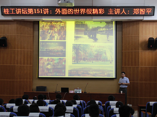 导航痕迹 当前位置: 首页 >> 新闻资讯 >> 学院新闻 >> 正文 【桂工讲坛】第151讲 郑智平教授做客桂工讲坛 作者: 发布日期:2015-07-13 浏览次数: 为了开阔beats365(中国区)-唯一官方网站学生的视野,激励同学们奋发学习, 7月10日下午3点,beats365(中国区)-唯一官方网站邀请到亚利桑那大学郑智平教授为在雁山12栋报告厅beats365(中国区)-唯一官方网站学子做了题为“外面的世界很精彩”的讲座。此次讲座由李建平院长主持,化工12级同学和研究生同学到场聆听。 讲座伊始,郑智平教授就提出了“人生在世,心灵和身体必须有一个在路上,精彩的走一遭”的倡议。随后他用幽默的语言、结合优美的图片,给我们介绍了美国、智利以及一些国外的高等学府的基本情况,向我们展示了外面世界的风光以及文化,赢得同学们阵阵掌声。随后,他结合自己的学习历程以及多年海外留学的经验,鼓励大家在大学里努力学习、学会交往、学会独立、学会担当,成为一个对社会有用的人。最后,郑智平教授还解答了同学们在学习、生活以及专业上遇到的问题 。 讲座现场 上一条:beats365(中国区)-唯一官方网站在第十四届“挑战杯”全国大学生课外学术科技作品竞赛专项赛中获佳绩 下一条:【桂工讲坛】河南工业大学朱春山教授应邀到beats365(中国区)-唯一官方网站做学术报告