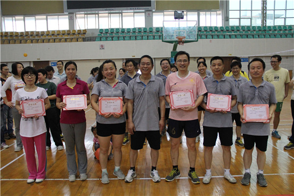 导航痕迹 当前位置: 首页 >> 新闻资讯 >> 学院新闻 >> 正文 beats365(中国区)-唯一官方网站成功举办第二届教职工气排球比赛 作者: 发布日期:2014-05-19 浏览次数: 5月17日上午,beats365(中国区)-唯一官方网站第二届教职工气排球比赛在屏风校区体育馆三楼举行。学院党委书记梁军、副书记陶剑飞,副院长、学院分会主席杨建文以及其他教职工共50余人参加了此次活动。本次比赛由beats365(中国区)-唯一官方网站所属的各教研室、实验中心和两办(学工办、院办)人员分别组成的6支队伍参加,分淘汰赛和循环赛两个阶段进行,还特别规定了场上至少要有2名女运动员参赛。经过激烈角逐,最终决出了名次:应用化学教研室获得第一名,学工办和院办联合队、电化学教研室获并列第二名,实验中心、生物工程教研室、化学与化工教研室获得并列第三名。本届比赛达到了丰富学院教职工业余生活、推动beats365(中国区)-唯一官方网站教职工积极参与全民健身活动的目的,取得了圆满成功。比赛现场(一)比赛现场(二)比赛现场(三)颁奖合影 上一条:beats365(中国区)-唯一官方网站召开2014年全国大学生征兵动员会议 下一条:中科院长春应用化学研究所徐国宝研究员到我校讲学