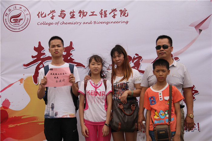 图三:新生在留念背景墙拍全家