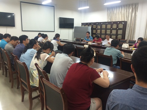 会议首先由刘勇平副院长介绍了中心建设进展情况。张淑华副院长提出了中心当前建设中存在的困难和问题。与会老师们围绕中心建设任务畅所欲言,各抒己见,提出了许多积极的意见和建议。会议最后,梁军书记回顾了该中心创建历程,对暑假期间老师们放弃休息,以主人翁的姿态,参与中心申报书的撰写、网站建设、视频拍摄等工作给予了充分肯定,对下一步工作进行了周密部署。