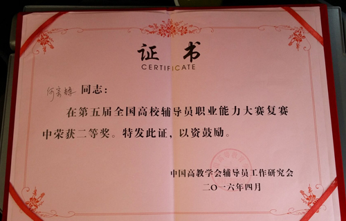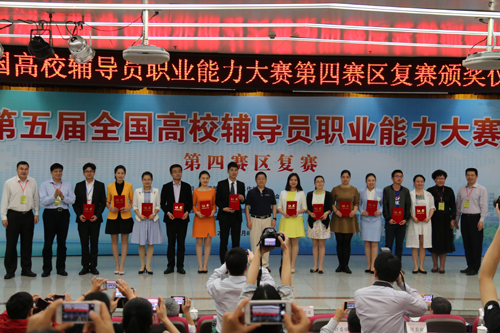 导航痕迹 当前位置: 首页 >> 新闻资讯 >> 学院新闻 >> 正文 beats365(中国区)-唯一官方网站在第五届全国高校辅导员职业能力大赛复赛中喜获佳绩 作者:李 冲 发布日期:2016-04-13 浏览次数: 4月9日至10日,第五届全国高校辅导员职业能力大赛复赛在广州举行,来自西藏、云南、广西、海南、福建、广东等6省(区)的60名高校专职辅导员参加了第四赛区的比赛。beats365(中国区)-唯一官方网站辅导员何宗辉及管理学院柴靓代表广西高校参赛,在比赛中表现出色,双双获得复赛二等奖。 本次比赛包括基础知识测试及网文写作、主题班会、案例分析、主题演讲和谈心谈话等5个环节。复赛最终评出一等奖10名,二等奖12名,三等奖18名,优秀奖20名。 何宗辉(左八)、柴靓老师(右三)接受颁奖 获奖证书 上一条:生物工程教研室召开“强基创优”工作落实会及生物工程专业本科人才培养方案讨论会 下一条:我校2016年第一期入党积极分子联合培训班开班典礼顺利举行