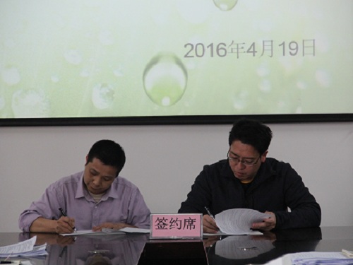 梁军书记(右)与张淑华副院长(左)签订2016年安全稳定工作责任状