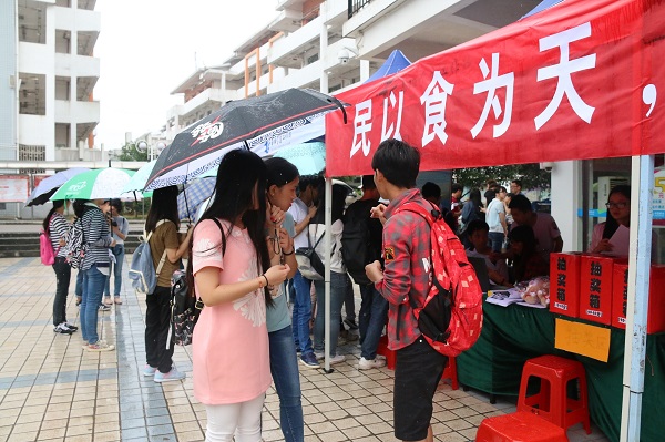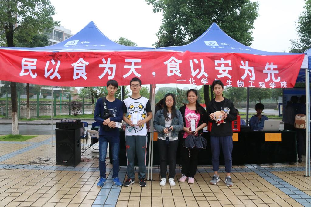 本次“食品安全知识竞答”活动主要通过三种途径开展,一是易班动态集赞活动,同学们通过转发本次活动信息以获得好友点赞,集够一定数量可到现场兑换相应奖品,通过好友集赞,为活动的开展起到了较好的宣传效果;二是线上答题:同学们通过在手机易班客户端添加《舌尖上的安全》轻应用进行答题,以正确率及用时长短作为评判标准,活动截止后,将通过易班平台公布获奖名单;三是线下答题环节,23、24日,beats365(中国区)-唯一官方网站分别在一号、二号食堂进行设点宣传,这才是真正的较量,现场答题精彩纷呈、5-10人轮番限时答题,总有人在答题刚开始就遭遇失败而被终止游戏,只获得三等奖的抽取机会,可见大家对“食品安全知识”的缺乏,但也不乏有一路“过关斩将”的大神,连续答对,赢得抽取一等奖的资格,桂工纪念版U盘、印有易班logo的水杯下一秒就在大神手中。期间,虽然雨落纷纷,却没有阻碍大家积极参与的决心,更没有淋湿大家答题抽奖的热情。