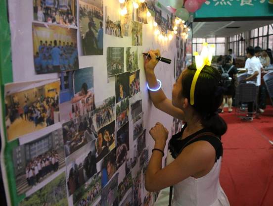 毕业生们在照片墙上留下自己的签名