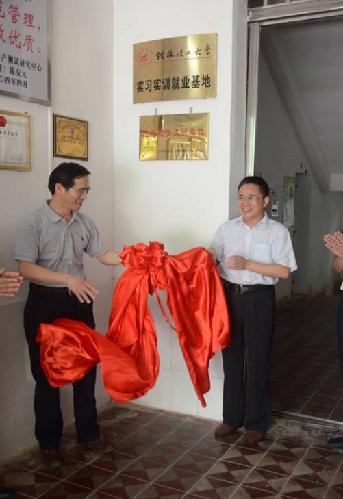张起钻总工程师(左)与李建平院长共同为实习实训就业基地揭牌