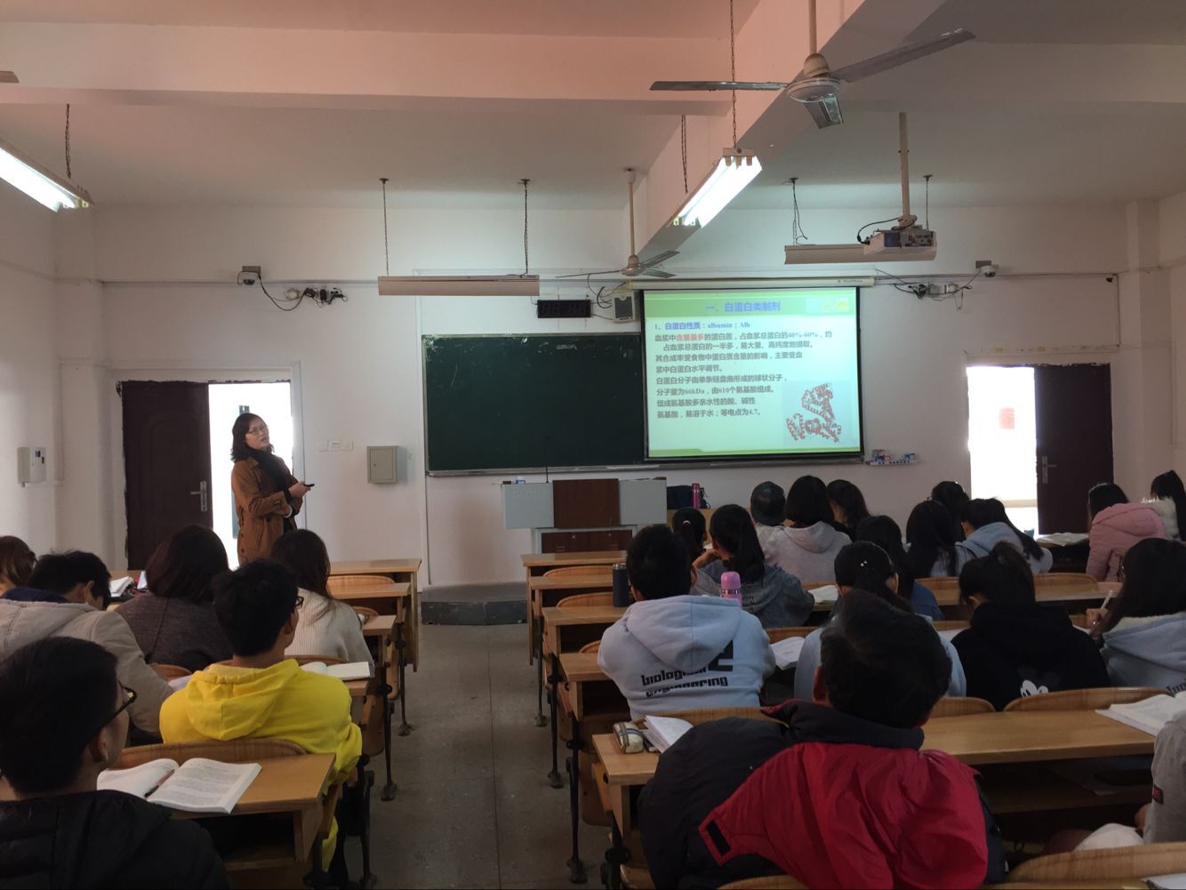 2016年12月7日,生物工程教研室分别对本教研室刘红艳老师主讲的《生物工艺制品学》以及李培骏老师主讲的《生物化学》进行了教学观摩活动。这是本教研室为贯彻落实学校进一步提升课堂教学质量行动检查而开展的第二次教学观摩活动。