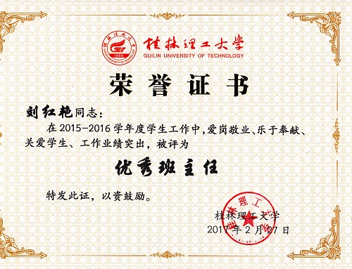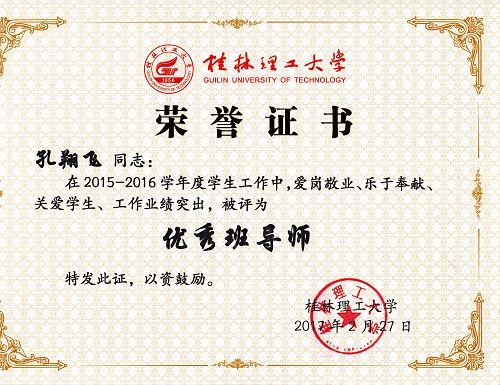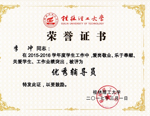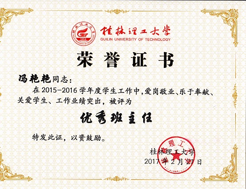 导航痕迹 当前位置: 首页 >> 新闻资讯 >> 学院新闻 >> 正文 beats365(中国区)-唯一官方网站教师获2016年度“优秀班主任”“优秀班导师”“优秀辅导员”荣誉称号 作者:李冲 发布日期:2017-03-08 浏览次数: 在我校2016年度优秀辅导员、优秀班导师和优秀班主任评选工作中,beats365(中国区)-唯一官方网站教师孔翔飞获“优秀班导师”称号,刘红艳、冯艳艳获“优秀班主任”称号,陈文甫、李冲获“优秀辅导员”称号。 本次评选,经个人申请,学院推荐,学校学生工作领导小组评定、审核而定,共评选出优秀辅导员22名,优秀班导师、优秀班主任72人。 上一条:beats365(中国区)-唯一官方网站刘勇平等教师获2016年度“就业工作先进个人”荣誉称号 下一条:beats365(中国区)-唯一官方网站召开2017年春季学期学生工作布置会