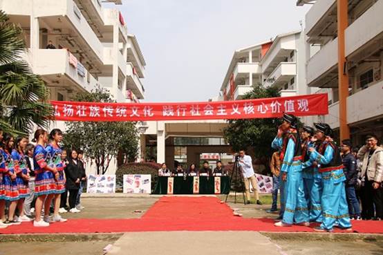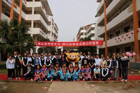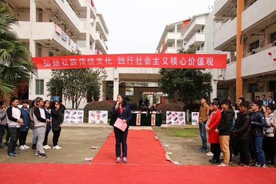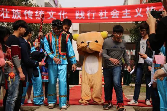 导航痕迹 当前位置: 首页 >> 新闻资讯 >> 学院新闻 >> 正文 “三月壮乡,十里桃花”——beats365(中国区)-唯一官方网站举办“弘扬壮族传统文化,践行社会主义核心价值观”主题教育活动 作者:陈鹏 梁巧 李冲 发布日期:2017-03-27 浏览次数: 为弘扬壮族传统文化,培育和践行社会主义核心价值观。3月26日下午,化生学院在雁山校区7A、7B宿舍区,举行“三月壮乡,十里桃花”主题教育活动。出席此次活动的有学院党委副书记陶剑飞老师、13级辅导员陈文甫老师、16级辅导员何宗辉老师、15级辅导员李冲老师以及刘宇辉老师。 活动伊始,陶剑飞老师为活动致辞。她说道:壮族传统文化是壮族人民在长期的社会历史实践中而形成的,具有较强的稳定性、持久性、传承性和顽强的生命力的精神财富,“三月三”是我们广西壮族独特的民族传统文化节日,我们应该立足民族优秀传统文化,培育和弘扬社会主义核心价值观。同时向同学们提出了三点希望:一是希望广大同学要传承创新,充分认识“弘扬壮族传统文化,践行社会主义核心价值观”系列活动的重要意义;二是希望广大同学继承先贤,做好“文化传播使者”;三是希望广大同学要崇德重德,将社会主义核心价值观和民族文化传统落实到日常学习生活中去。 随后,各项活动随即展开。本次活动共分为三部曲。第一部曲“歌声嘹亮,唱响壮乡”歌唱节目;第二部曲“千里传音,绣球传情”现代版对山歌;第三部曲“壮乡壮色”的体育竞技活动。 首先我们欣赏到的节目是由化生团委·学生会带来的《多谢了》,用他们壮族最原汁原味的独特歌喉拉开了活动的序幕。唱山歌是我们“三月三”具有最鲜明特色的活动,而此次团委·学生会带来的唱山歌节目也是按照传统唱山歌的形式进行。不仅有身穿壮乡民俗特色服装的同学对唱山歌,更有两栋宿舍的同学在楼上对唱山歌。歌声嘹亮,唱出了动人的壮乡民族风情。对唱结束,余音还在两栋楼间回荡,美丽的绣球却已引起了另一波高潮。老师们纷纷抛出手中的绣球,传达着那份纯真的情谊,体验着浓浓壮族的风情。 “咚咚咚…”同学们的注意力被这强节奏感的敲打声吸引而去,只见几名同学拿着竹竿作有节奏的敲打,然后身着壮族服饰的姑娘们在上面跳。这又是壮族另一项特色运动——过竹竿阵。在壮族姑娘和小伙的带领下,老师们也上去体验了花式过竹竿阵。步子的节拍与竹竿打击响声同步,旋转跳跃,简单的动作却又不简单的通过,让参与者切身体会到了壮乡特色运动的魅力。紧接着,到了最后一个项目——三人滑板竞速。这是一个团队合作的项目,合作方式是三人站作一队,三个人的左右脚共同踏在一块滑板上,考验三人组的团队合作及协同能力,活动过程中同学们参与积极,老师们也按耐不住和同学“切磋”了几局。 最后,由李冲老师对本次活动进行总结发言。他表示今年我们将继续以中央民族工作会议和全区民族工作会议精神,牢牢把握“各民族共同团结奋斗、共同繁荣发展”的主题,以“三月三”为契机,围绕民族团结、民族进步、民族文化,深入开展“三月三”主题教育系列活动,大力弘扬壮族传统文化。通过本次“三月壮风,十里桃花”主题教育活动,希望我们充满青春活力的大学生们能够为“壮族传统文化的传承”撑起一片蓝天。 本次活动取得了圆满成功,三月壮乡,十里桃花,壮族的传统文化丰富多彩,源远流长。通过本次活动,在场师生们不仅仅收获了快乐,更重要的是进一步了解了壮乡文化,壮族风俗,为“弘扬壮族传统文化,践行社会主义核心价值观”主题教育的后续开展打下了坚实的基础。 党委副书记陶剑飞老师致辞 唱响山歌 绣球传情 体育竞技(一) 体育竞技(二) 壮族青年男女 三月壮风,十里桃花 上一条:深圳大学生命与海洋科学学院客人到访beats365(中国区)-唯一官方网站 下一条:2017年广西高校毕业生春季双选会暨beats365(中国区)-唯一官方网站毕业生春季双选会举行