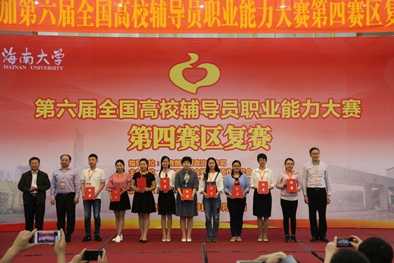 导航痕迹 当前位置: 首页 >> 新闻资讯 >> 学院新闻 >> 正文 beats365(中国区)-唯一官方网站辅导员在第六届全国高校辅导员职业能力大赛复赛中取得较好成绩 作者:李冲 发布日期:2017-04-20 浏览次数: 4月13日 至14日,第六届全国高校辅导员职业能力大赛第四赛区复赛在海南大学举行,来自西藏、云南、广西、海南、福建、广东等6省(区)经过初赛选拔的60名高校专职辅导员参加了比赛。我校辅导员饶筠筠代表广西高校参赛,以比赛第27名的较好成绩获得比赛三等奖。 本次比赛包括基础知识测试及网文写作、主题班会、案例分析、主题演讲和谈心谈话等5个环节。复赛最终评出一等奖10名,二等奖12名,三等奖18名,优秀奖20名。 获奖证书 饶筠筠老师(右四)接受颁奖 上一条:化生学院召开2016年就业工作总结表彰暨2017年就业工作大会 下一条:【学在桂工 研在化生】化生学院举办2016年大学生创新创业训练计划项目结题答辩会