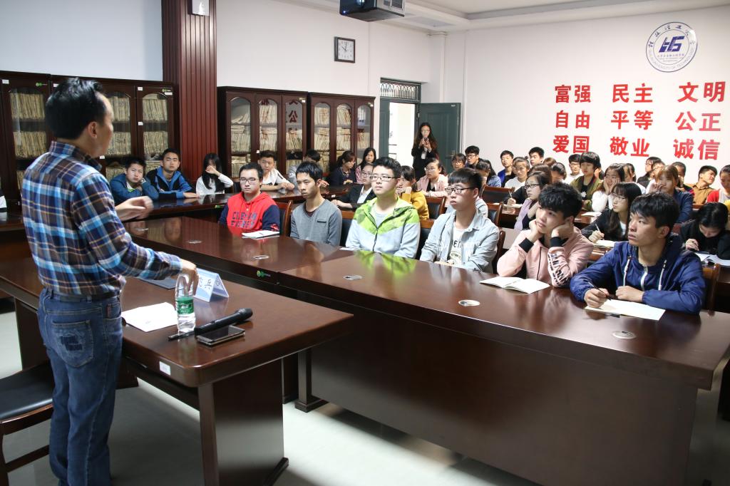 讲座伊始,刘飞兵董事长用现实生活中的创业案例,使同学们更加了解创新创业,不一样的创业环境,随着时代背景的不同而变化。演讲中刘董事长提出两个问题:一是为什么上大学?二是在校大学生如何理解创新创业。