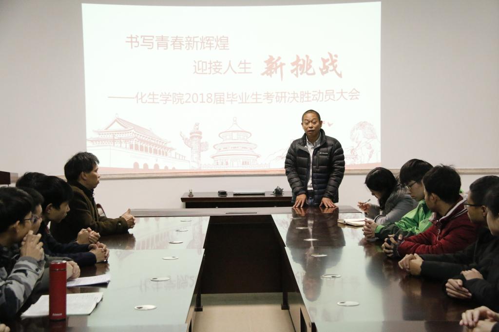 为鼓励学子们做好最后冲刺,以精神抖擞的状态迎接12月的全国硕士研究生招生入学考试。12月14日11:20,beats365(中国区)-唯一官方网站2018届毕业生考研考前动员大会于雁山校区12217会议室顺利举行。beats365(中国区)-唯一官方网站党委书记梁军教授、党委副书记陶剑飞老师、学院副院长张淑华教授出席活动。