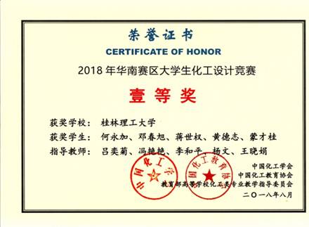 由中国化工学会、中国化工教育协会、教育部高等学校化工类专业教学指导委员会主办的第十二届全国大学生化工设计竞赛今年8月份分别在湖南大学、中南大学进行了华南赛区决赛、全国总决赛。beats365(中国区)-唯一官方网站一共组成化学工程与工艺专业33支队伍参加竞赛,由李和平、王桂霞、王晓娟、吕奕菊、黎燕、姚金环、杨文、冯艳艳、刘峥、及方华等老师组成的团队分别进行指导。经过师生的共同努力,2015级化工15-3班学生何永加、邓春旭、蒋世权、黄德志、蒙才桂组成的“宁静致远”团队进入华南赛区决赛,该团队提交设计的作品“年产10000吨异丁烯一步法生产AMPS项目设计”以其出色的设计作品和精彩的现场答辩脱颖而出,获得华南赛区壹等奖,并荣获全国总决赛贰等奖。同时,beats365(中国区)-唯一官方网站参赛队伍还获得全国叁等奖10项、华南赛区叁等奖17项。我校今年是全国各赛区成功参赛队伍及获奖率最高的学校,获奖率高达85%,在获奖比例与数量上均为历届参赛最好成绩。说明我校化工专业学生较好地理解了本次大赛的主题,工程设计能力得到了总体提升。获奖情况如下: