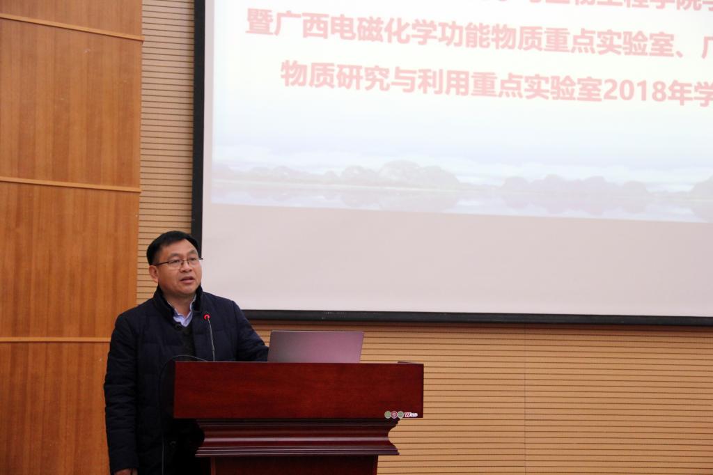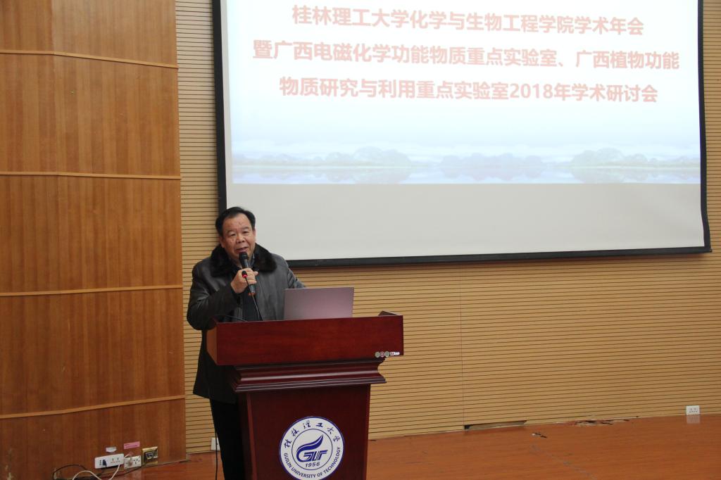 2019年1月12日,beats365(中国区)-唯一官方网站在雁山校区萃华楼学术报告厅举办了化学与生物工程学院学术年会暨广西电磁化学功能物质重点实验室、广西植物功能物质研究与利用重点实验室2018年学术研讨会。学校副校长、广西电磁化学功能物质重点实验室主任梁福沛教授,广西植物研究所所长、广西植物功能物质研究与利用重点实验室主任李典鹏研究员出席了会议。会议邀请了南京大学燕红教授,教育部新世纪人才、中南大学特聘教授潘安强教授到会并作学术报告。学校科技处有关领导、相关专业师生以及广西植物研究所科研人员近200人参加了学术研讨会。学术会议由beats365(中国区)-唯一官方网站院长李建平教授支持。