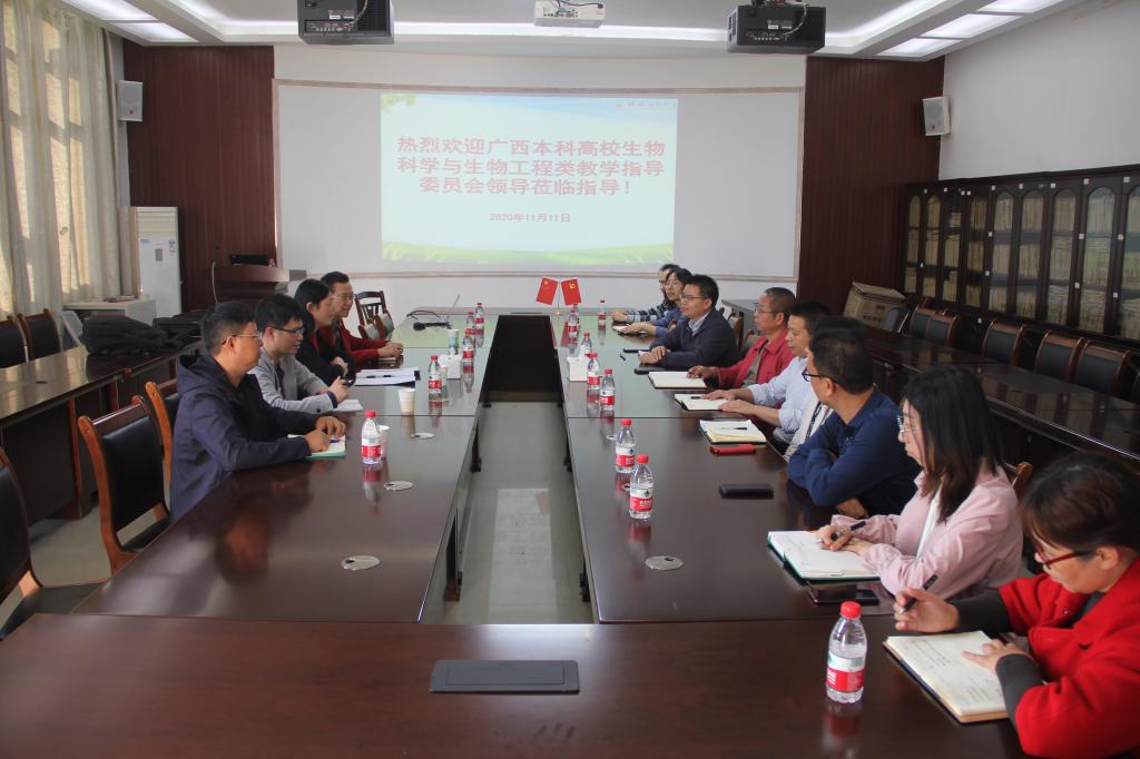11月11日,广西本科高校生物科学与生物工程类教学指导委员会副主任委员何英姿教授(南宁师范大学环境与生命科学学院党委书记)、廖永岩教授(北部湾大学广西北部湾海洋生物多样性养护重点实验室主任)及委员叶云教授(广西科技大学生物与化学工程学院副院长)、廖覃敏高工(南宁泰诺生物有限公司总经理)一行四人到访beats365(中国区)-唯一官方网站,就生物工程一流专业、一流课程建设及工程教育专业认证等工作进行调研。