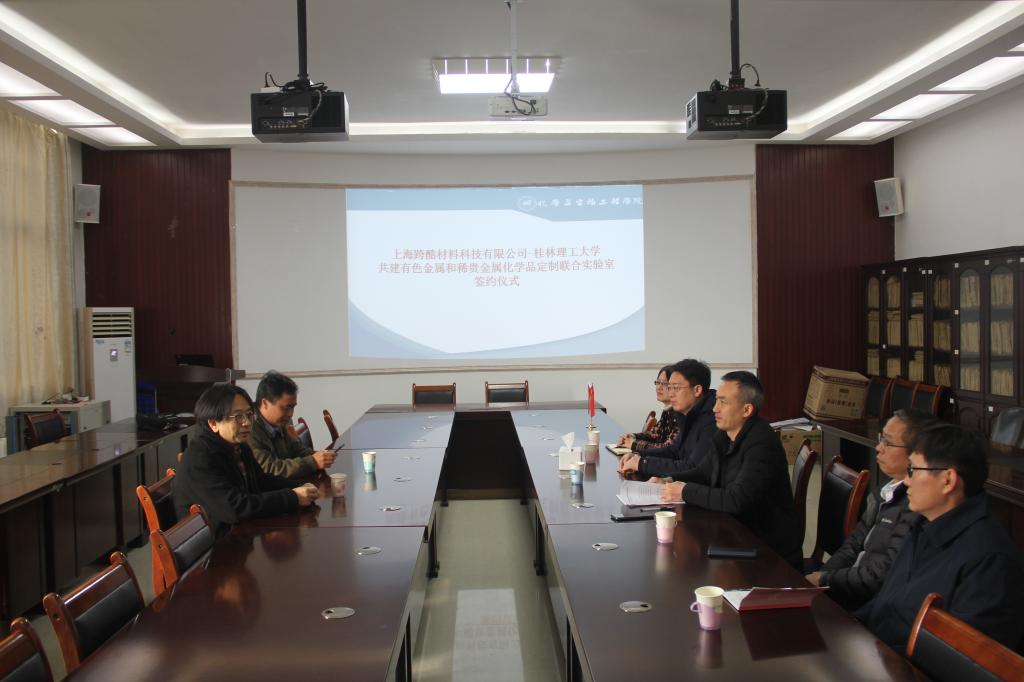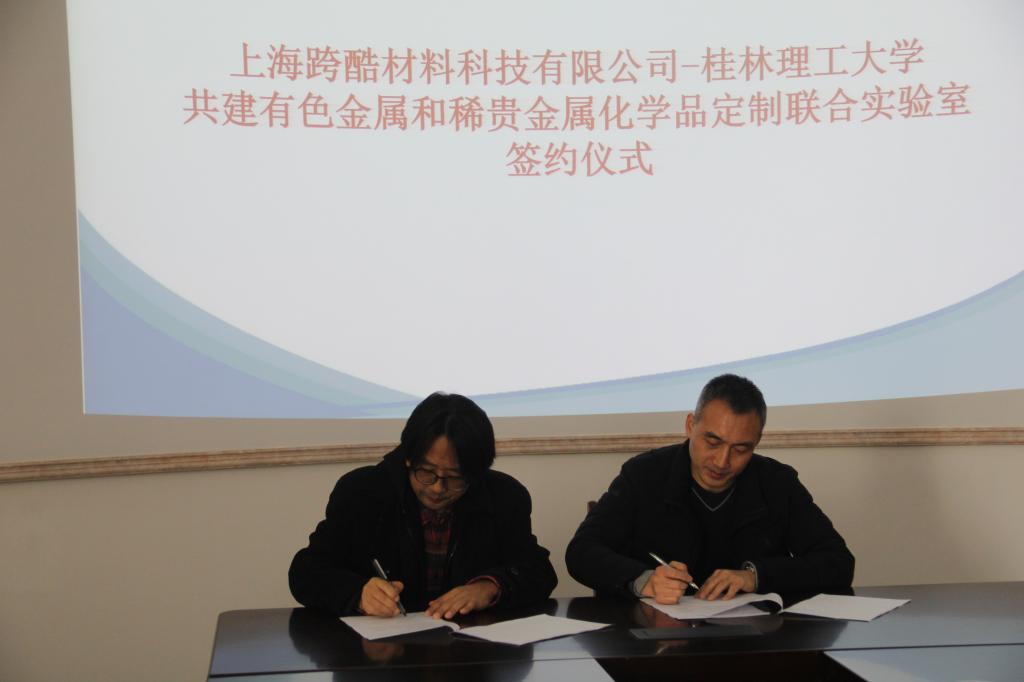 12月22日上午,beats365(中国区)-唯一官方网站与上海跨酷材料科技有限公司(以下简称公司)在雁山校区12217多功能室举行签订共建有色金属和稀贵金属化学品定制联合实验室协议仪式。上海跨酷材料科技有限公司董事长王安之博士、beats365(中国区)-唯一官方网站党委书记梁军、副院长何方、刘勇平以及部分公司代表、教师代表参加了签约仪式。签约仪式由学院副院长何方主持。