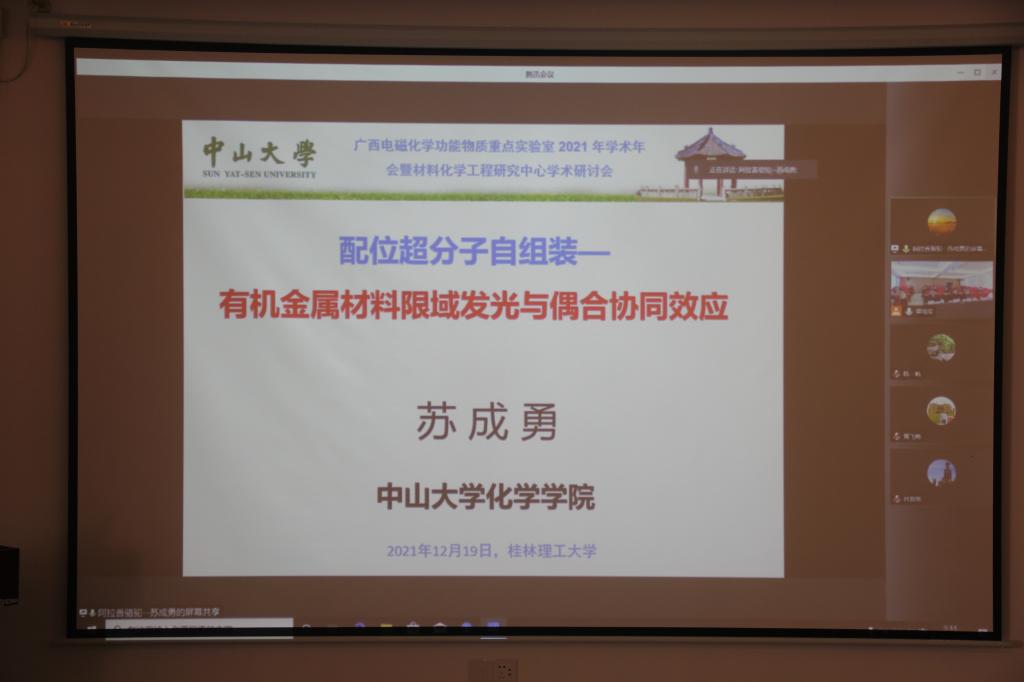 导航痕迹 当前位置: 首页 >> 新闻资讯 >> 学院新闻 >> 正文 beats365(中国区)-唯一官方网站举办广西电磁化学功能物质重点实验室2021年学术年会暨材料化学工程研究中心学术研讨会 作者:谭海军、林文钊 发布日期:2021-12-21 浏览次数: 2021年12月19日,beats365(中国区)-唯一官方网站在屏风校区科技园众创中心学术报告厅举办广西电磁化学功能物质重点实验室2021年学术年会暨材料化学工程研究中心学术研讨会。学校副校长、广西电磁化学功能物质重点实验室主任梁福沛教授出席并在开幕式上致辞。会议邀请了浙江大学黄飞鹤教授、中山大学苏成勇教授、华东理工大学教授/浙江工业大学叶邦策教授、湖南大学王双印教授、华东理工大学/郑州大学韩一帆教授等专家在线上参会,beats365(中国区)-唯一官方网站全体教师及材料科学与工程学院部分教师参加了此次会议。会议由beats365(中国区)-唯一官方网站院长匡小军研究员主持。 梁福沛副校长在致辞中首先对参加会议专家、老师表示欢迎和感谢。他介绍了重点实验室在今年所取得的成绩。他希望通过举办学术年会,加强与校外专家的交流与合作,促进重点实验室等科研平台的建设发展。他还希望,通过开展学术活动,进一步活跃学术氛围,增进各科研团队、个人之间的相互了解,促进科研融合,推动学院科研水平再上新台阶。 会议采取线上+线下的方式进行。在线上报告中,黄飞鹤教授、叶邦策教授、苏成勇教授、王双印教授、韩一帆教授重点介绍了他们近期在化学与材料科学领域取得的优秀成果以及国家自然科学基金申报过程的相关经验。广西电磁化学功能物质重点实验室、材料化学工程研究中心的部分骨干教师:周立教授、陈秀丽教授、李义兵教授、尹从岭教授在现场作报告,主要介绍了他们在化学、材料科学交叉领域的科研工作进展情况;甄士杰副研究员、李世清副教授、海杰峰副教授、刘博天副研究员、刘光艳博士介绍了他们在电、磁化学功能物质的创制与应用领域等方面取得的进展情况,何方研究员分享了其申报国家自然科学基金的丰富经验。本次会议报告涉及领域广泛,内容丰富,讲解深入浅出,使大家拓宽了学术视野,取得了良好交流效果,对推动学院科研交叉融合和学科建设取得更好成绩起到了积极作用。 beats365(中国区)-唯一官方网站院长匡小军研究员在闭幕式上作了总结讲话,他对各位专家和老师表示感谢。他期望学院今后进一步依托重点实验室和研究中心平台,继续强化交流与合作,营造浓厚的学术氛围,促进化学、材料学科的交叉融合,为学院的学科建设尤其是博士点建设贡献力量。 梁福沛副校长在开幕式上致辞 线上报告(一) 线上报告(二) 现场报告(一) 现场报告(二) 会议现场 上一条:2021年分析化学设计实验竞赛圆满结束 下一条:beats365(中国区)-唯一官方网站召开年终意识形态工作会议