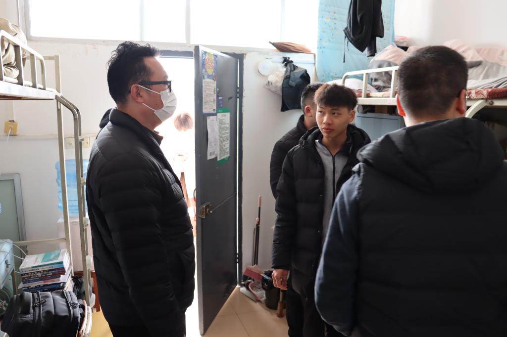 导航痕迹 当前位置: 首页 >> 新闻资讯 >> 学院新闻 >> 正文 学院全体辅导员深入学生宿舍走访返校学生 作者:黄道坤 发布日期:2022-02-28 浏览次数: 在新学期学生返校之际,为详细了解学生思想生活状态,进一步落实学校疫情防控、线上授课、安全教育等工作。2月28日上午,学院党委副书记李南带领学生工作办公室全体辅导员深入学生宿舍走访学生,与返校学生们深入交流,了解并帮助学生解决相关问题和困难。 走访过程中,老师们仔细查看了学生宿舍内务整理、卫生安全以及通风消毒等情况,提醒同学们尽快进入新学期学习生活状态。同时,对学校开学初疫情防控工作和线上授课等要求进行了进一步强调。李南副书记嘱咐同学们一要做好宿舍卫生清洁,严格落实学校疫情防控工作要求;二要尽快调整好作息时间,按时进行线上课程学习,保证学习效果;三是要提高安全意识,严禁使用违规电器,谨防电信诈骗。四是针对毕业班学生,要尽快确定就业方向,把剩余时间精力投入到毕业(论文)设计中去。同学们也纷纷表示一定严格按照学校相关要求做好各项工作,以崭新的姿态面对新学期的学习生活。 通过走访学生宿舍,学院进一步了解了学生返校情况和学习需求,促进了师生之间的互相了解,为学院各项工作顺利开展打下了基础。 学院全体辅导员走访学生宿舍 党委副书记李南老师同学生交流 学生在宿舍认真上网课 上一条:beats365(中国区)-唯一官方网站举行“2022基金申请面对面活动” 下一条:学校党委常委、副校长梁福沛出席beats365(中国区)-唯一官方网站2022年战略研讨会