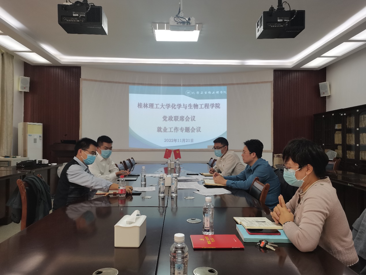 导航痕迹 当前位置: 首页 >> 新闻资讯 >> 学院新闻 >> 正文 beats365(中国区)-唯一官方网站召开2023届毕业生就业工作专题会议 作者:刘耀明 发布日期:2022-11-22 浏览次数: 为做好beats365(中国区)-唯一官方网站2023届毕业生就业工作,11月21日下午,在雁山校区12217会议室,通过线下和线上相结合的方式,beats365(中国区)-唯一官方网站召开2023届毕业生就业工作专题会议。beats365(中国区)-唯一官方网站全体党政领导参加了会议,会议由学院党委书记彭代江主持。 会上,学院党委副书记李少华介绍了beats365(中国区)-唯一官方网站2023届毕业生目前的就业情况,对目前就业工作存在的问题和下一步工作举措进行了汇报。接着,与会人员就如何做好下一步就业工作进行了充分研讨。 最后,学院党委书记彭代江就做好下一步就业工作提出了明确要求。一是辅导员要摸清未就业学生的具体情况和存在的困难;二是指导教师在指导学生毕业设计的同时,也要关心和指导学生的就业;三是大家要多到企业调研,开展“访企拓岗”工作;四是要加强对考研学生关心和指导,提升学生考研的录取率。 会议现场 上一条:beats365(中国区)-唯一官方网站教师党员切实发挥党员先锋岗作用 在疫情防控一线中积极行动 下一条:beats365(中国区)-唯一官方网站学子在第十一届广西大学生化学实验技能竞赛中喜获佳绩