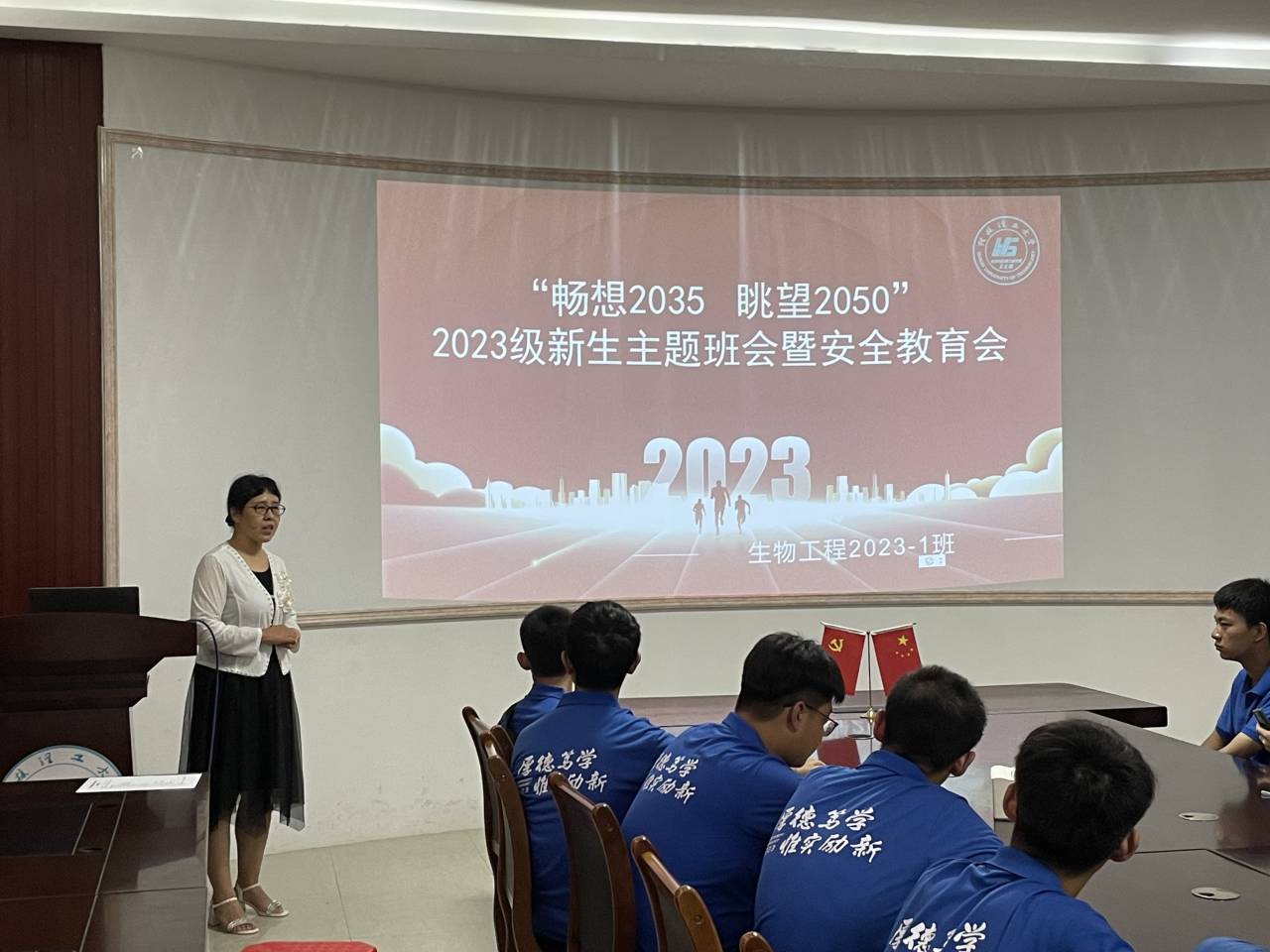 导航痕迹 当前位置: 首页 >> 新闻资讯 >> 学院新闻 >> 正文 化学与生物工程学院各班级召开“畅想 2035 眺望 2050”新生主题班会暨安全教育会 作者:朱皓 发布日期:2023-09-11 浏览次数: 进一步教育引导新生尽快适应大学学习生活,树立学习和发展目标,帮助新生了解大学生活和专业发展,明确人生目标和努力方向,为大学阶段打下坚实基础,化学与生物工程学院2023级各班级于9月11日召开“畅想2035 眺望2050”新生主题班会暨安全教育会。各班班主任借以班会契机,帮助学生树立远大理想,勇担时代责任,树立学习目标,做出合理规划,实现健康成长。 班会上,各班班主任对新生进行了教育,讲解了新生对学习生活的适应,大学生日常行为规范,并对防火防盗、防范电信诈骗等方面进行重点强调。2023级化工与制药类1班班主任黄红霞老师希望班级同学肩负时代责任,以时不待我的紧迫感刻苦学习,努力练就人生和事业的基本功,做有理想、有追求、有担当、有作为、有品质、有修养的新时代青年;2023级化工与制药类2班班主任吕慧丹老师表示了对新生同学的欢迎,希望同学们以崭新形象,扬帆起航,走进精彩的大学生活,带着新的目标,尽情挥洒青春与激情,牢记奋斗与开拓;2023级化工与制药类3班班主任姚金环老师希望同学们把握青春的激情,奋斗的热情,追求的痴情,提高英语四级通过率,加强自身对专业知识的掌握;2023级化工与制药类4班班主任张秀清老师向同学们强调要尽快适应新的生活,新的学习,平时要多努力,多探究;2023级化工与制药类5班班主任李少华老师鼓励新生要积极参与实践实验、创新创业、学科竞赛等教育教学活动,积极投入大学的学习生活;2023级生物工程1班班主任李静老师希望大家要努力学习,积极科研,在beats365(中国区)-唯一官方网站扬帆起航;2023级生物工程2班班主任李海云老师指出大学就像发酵罐,最后的成品取决于发酵过程,大学生活很美好也很短暂,希望新同学都能怀揣梦想,珍惜时光,一如既往地努力拼搏;2023级应用化学1班班主任朱文远老师指出大学是新的起点,同学们要融入新的环境,塑造更好的自己;2023级应用化学1班班主任阮贵华老师鼓励同学们在面对未来时保持积极向上的心态,努力学习,不畏艰难。 各班“畅想 2035 眺望 2050”新生主题班会暨安全教育会的成功举办,不仅帮助新生们更好地适应大学生活,也增强了大家的安全意识。相信在未来的学习和生活中,新生们必定能够展现出自己的风采,并为学校的发展贡献力量。 上一条:学院召开2023级本科新生见面会 下一条:以心连“新”,关怀入寝——学院领导深入学生宿舍开展走访慰问